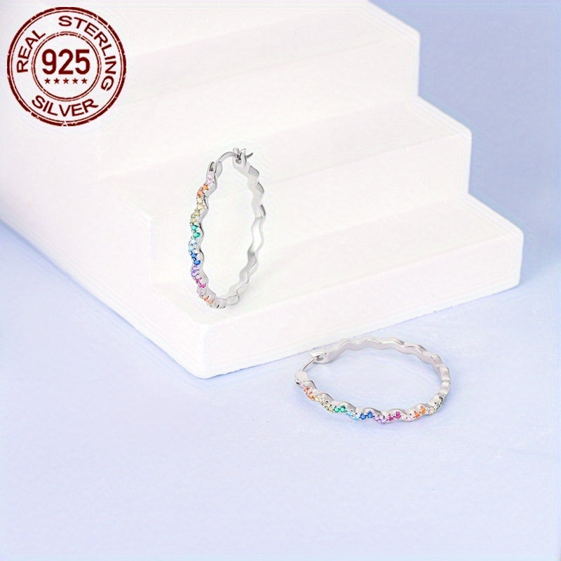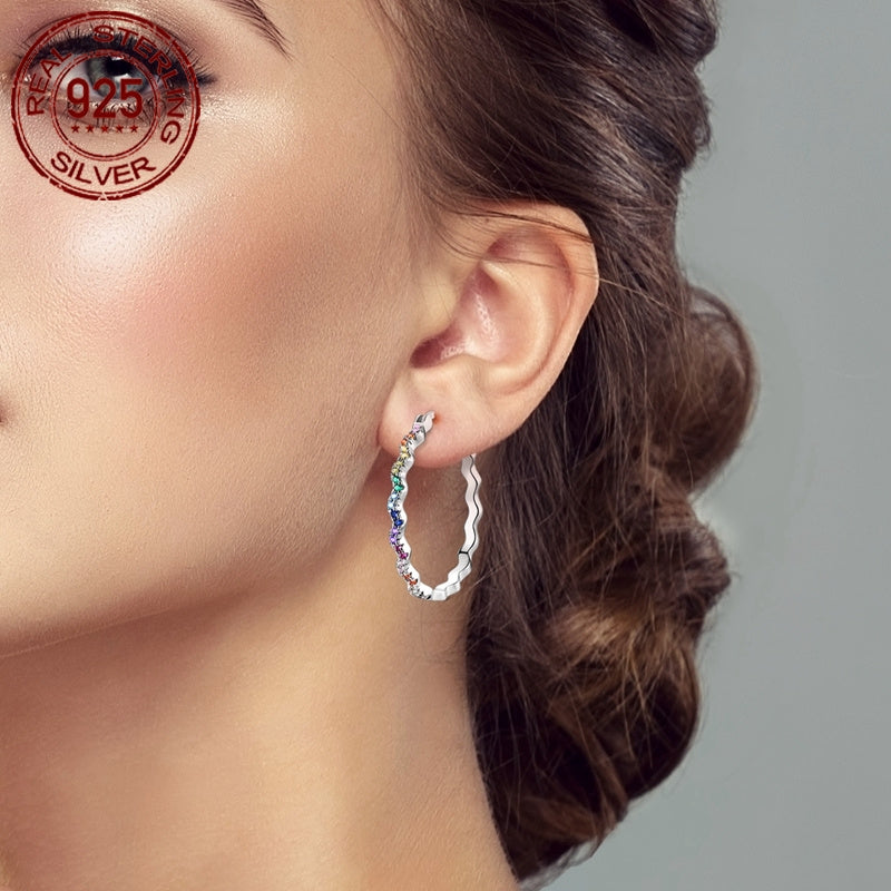 Add a touch of glamour to your look with these gorgeous wavy earrings. Made of 925 Sterling Silver, these earrings feature sparkling synthetic zirconia and are hypoallergenic. Perfect for weddings, parties, or as a special gift.