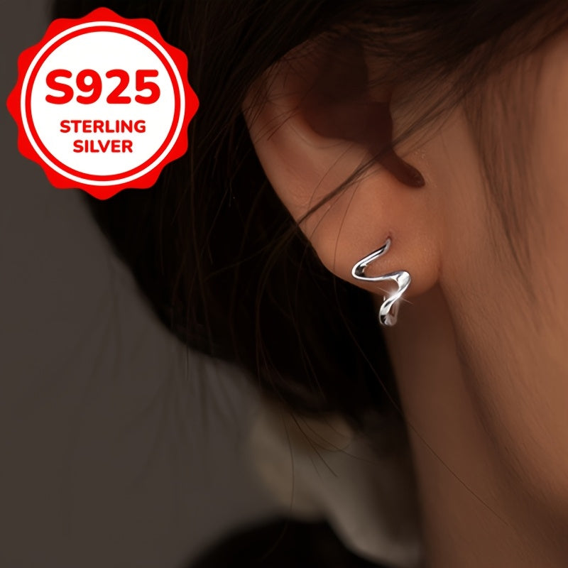 These elegant wave stud earrings are made from 925 sterling silver with 18K golden plating. They are hypoallergenic, lightweight at just 1.45g, perfect for daily wear and sports activities. A great Valentine's gift for women.