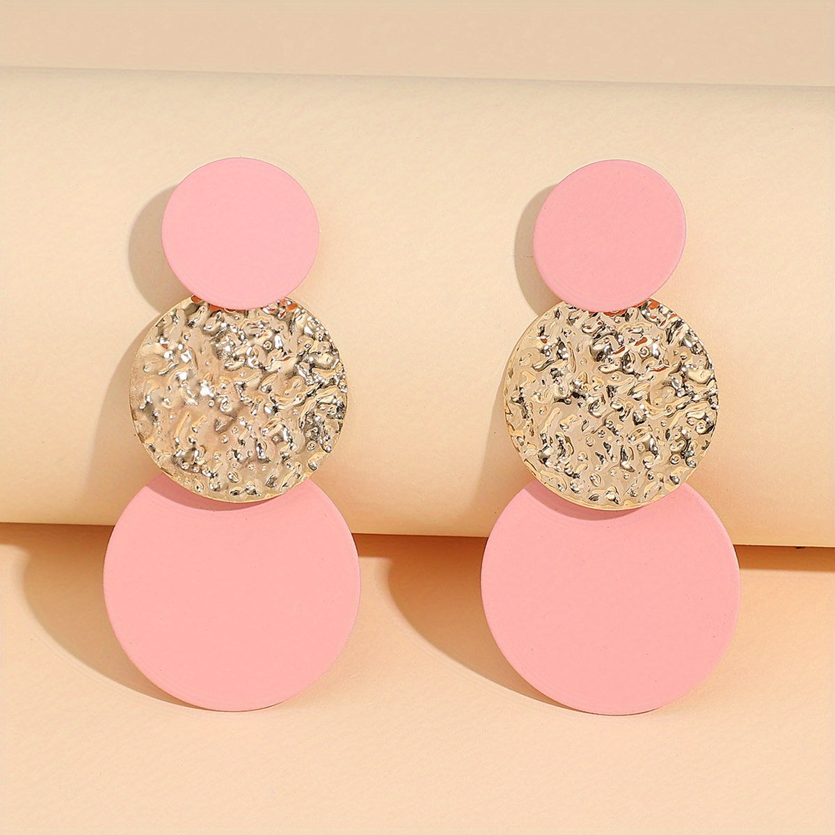 Alloy Textured Round Drop Earrings For Women Girls Gift