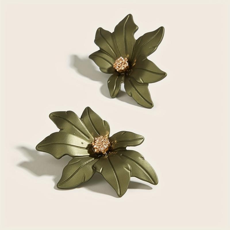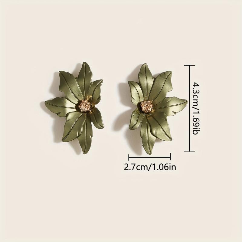 Elevate your style with these versatile symmetrical floral stud earrings in green and golden tone metal. Perfect for daily wear or as a thoughtful gift year-round.