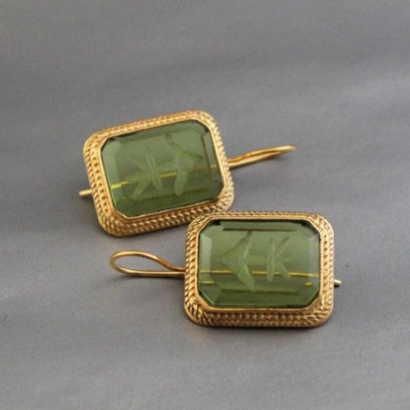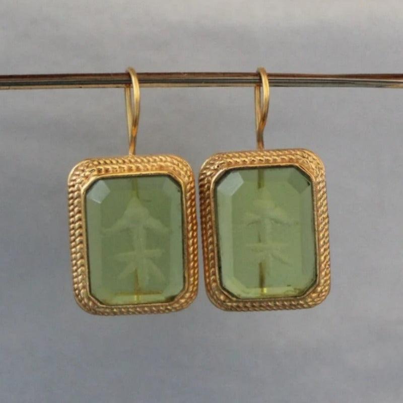 Vintage bohemian green crystal earrings featuring intricate patterns. Made with high-quality copper and perfect for daily wear or special occasions. A great gift for Mother's Day!