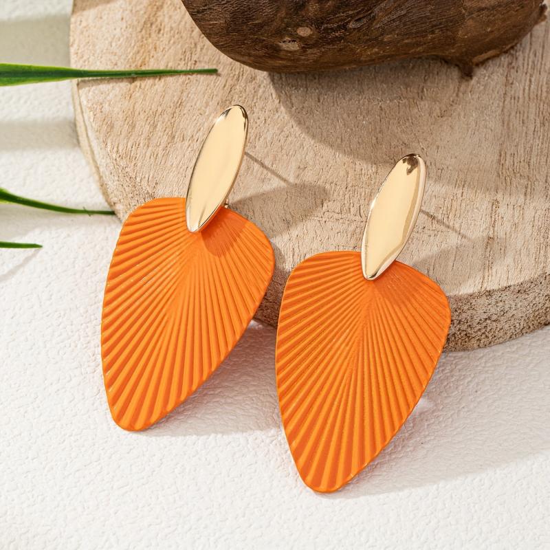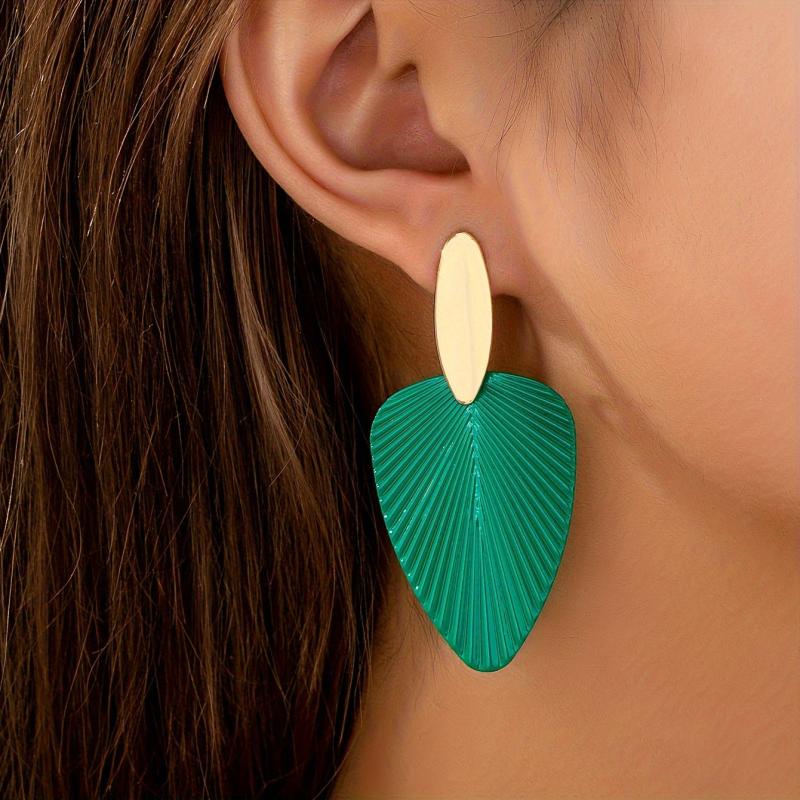 Adding a pop of color to your outfits, these bohemian leaf-shaped earrings are perfect for everyday wear or to elevate your vacation style. The ruffled texture adds a unique touch to your look all year round.