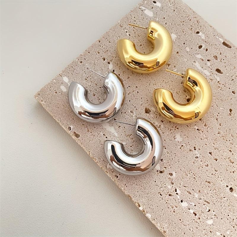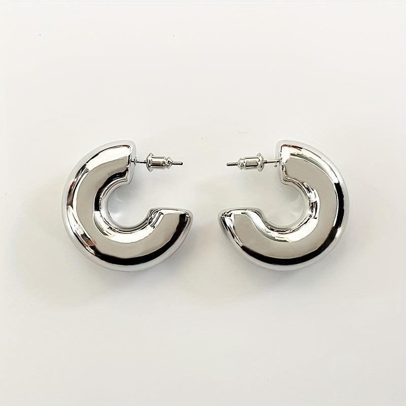 These stylish C-shaped tone earrings are made of stainless steel with a hip hop style design. Perfect for daily wear or party outfits, they make a great gift for women friends. Ideal accessory for spring and all seasons.