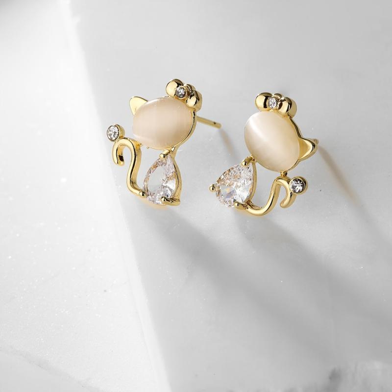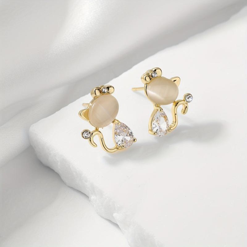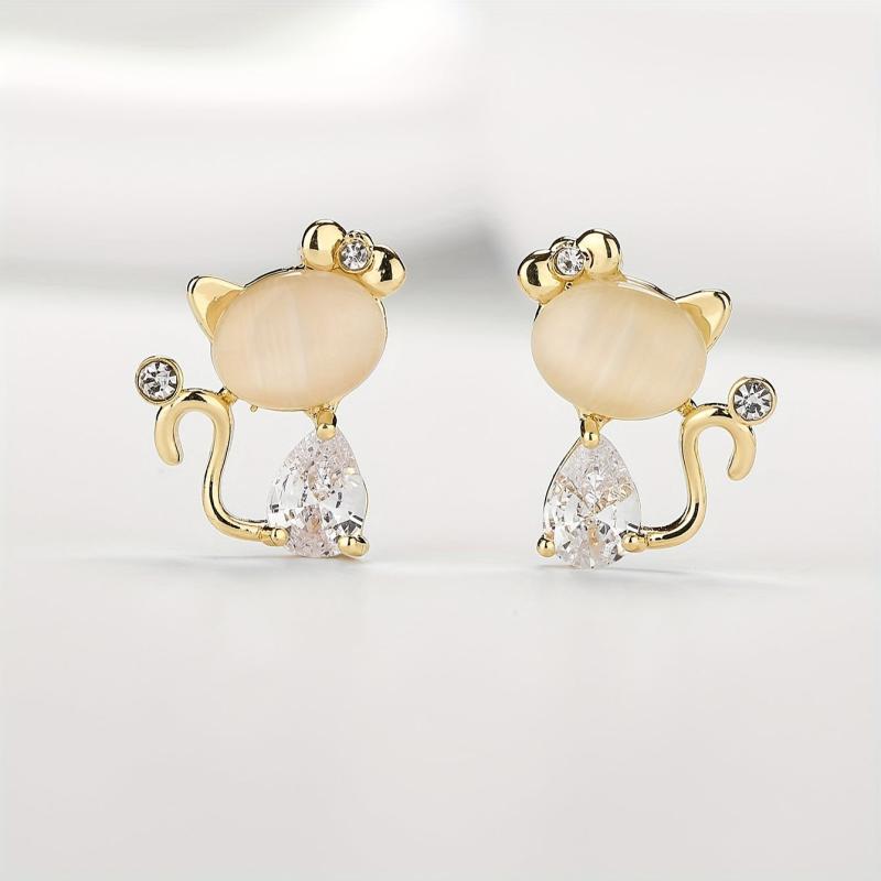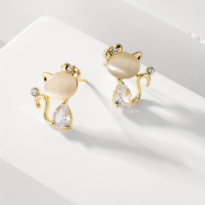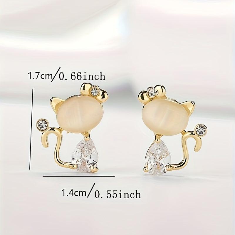 Cat Stud Earrings Inlaid Zirconia Animal Piercing Jewelry