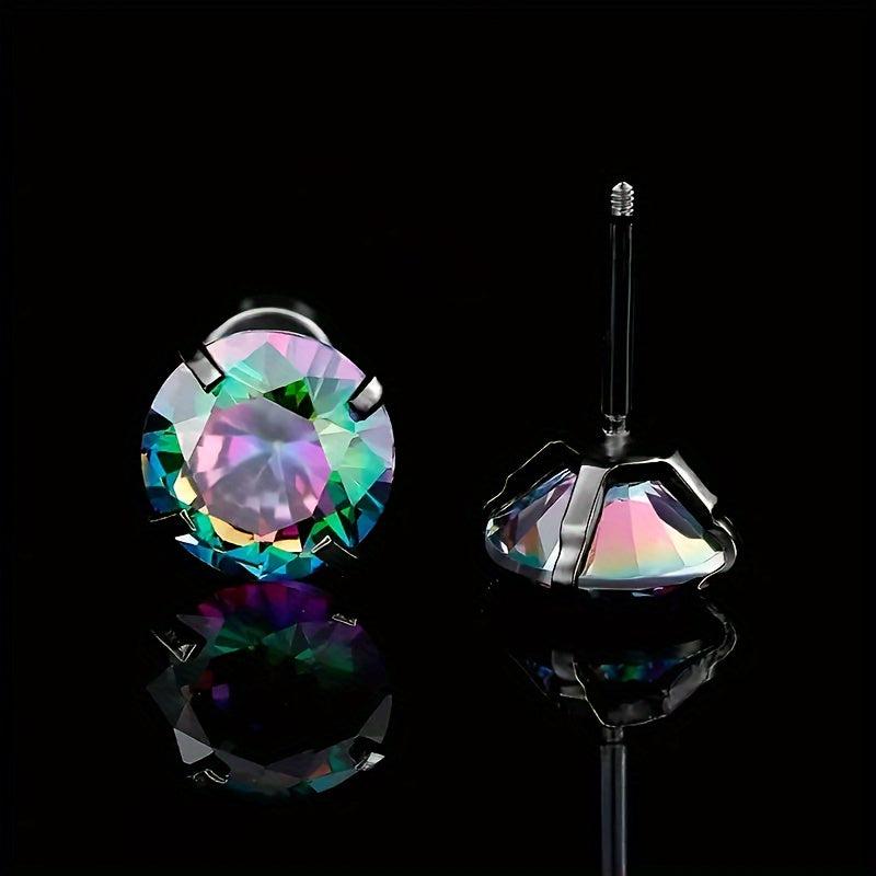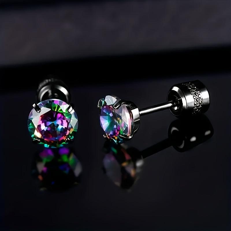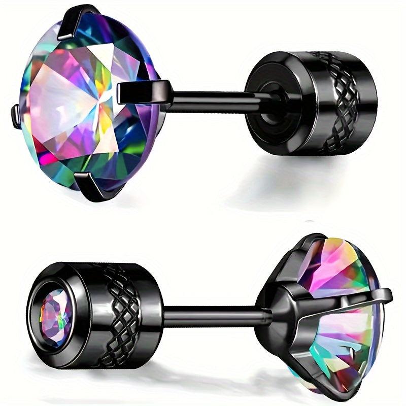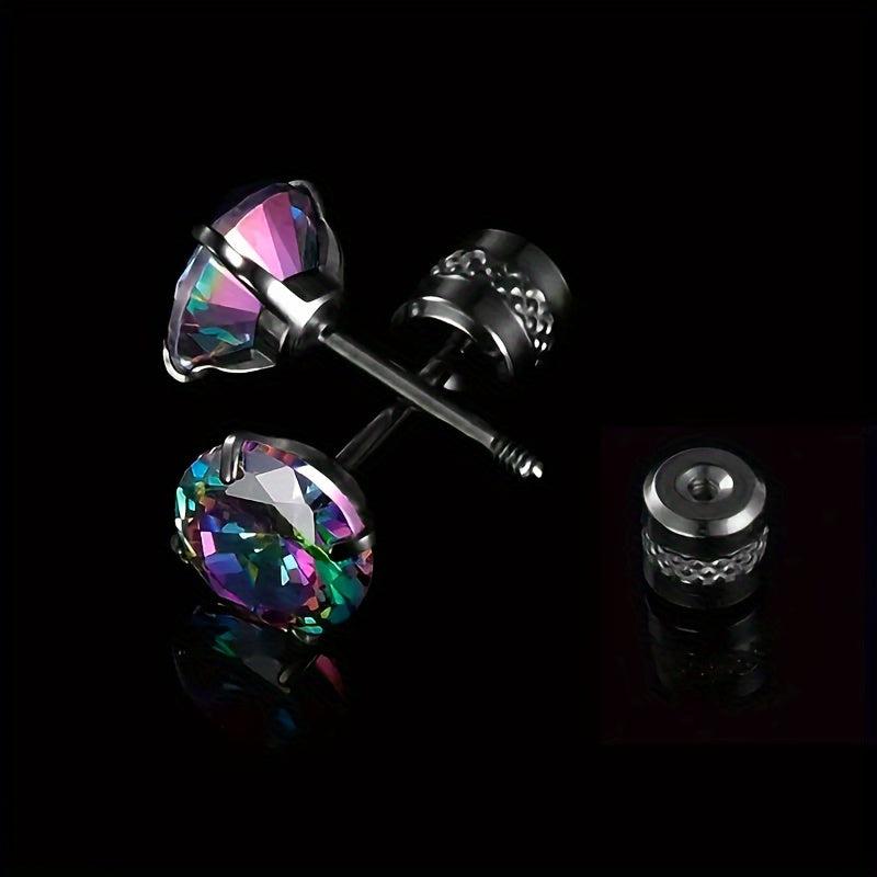 Add a pop of color to your look with these sexy stainless steel stud earrings featuring colorful synthetic cubic zirconia. Perfect for daily wear or to elevate your party outfit.