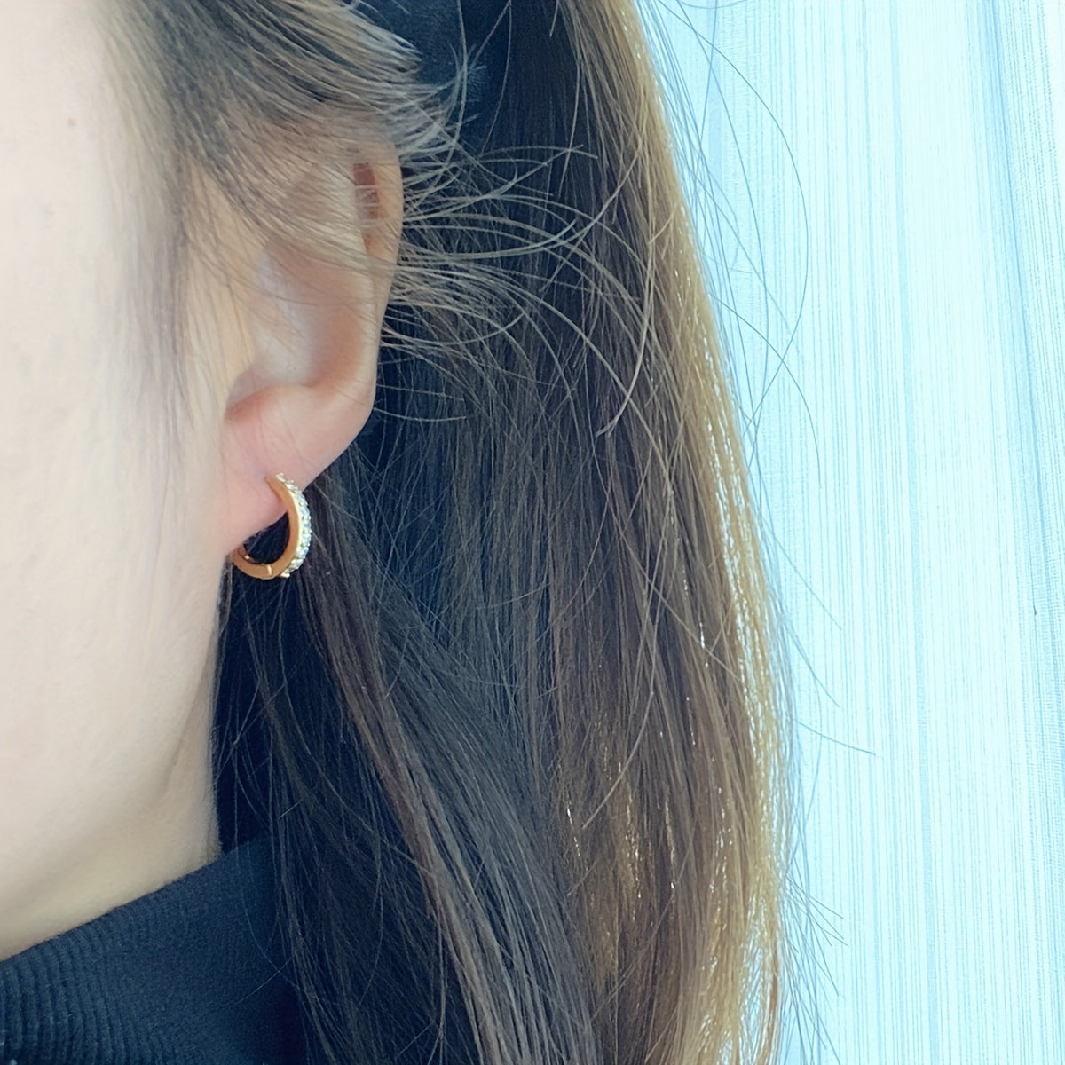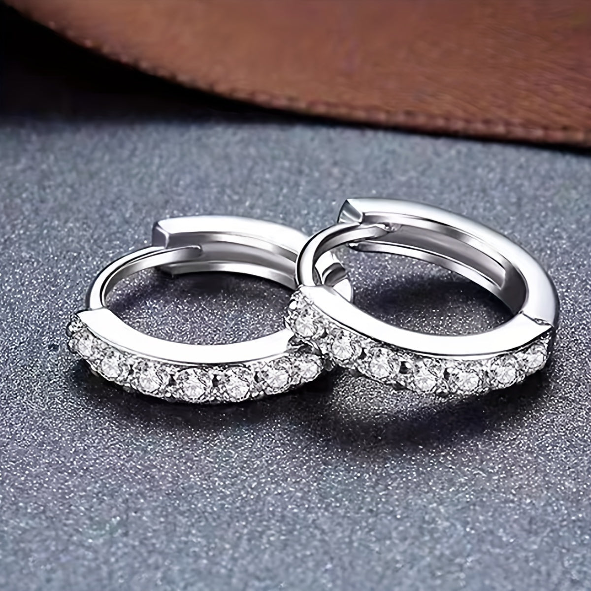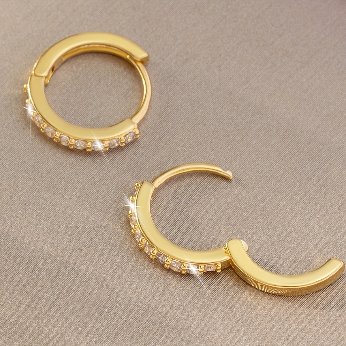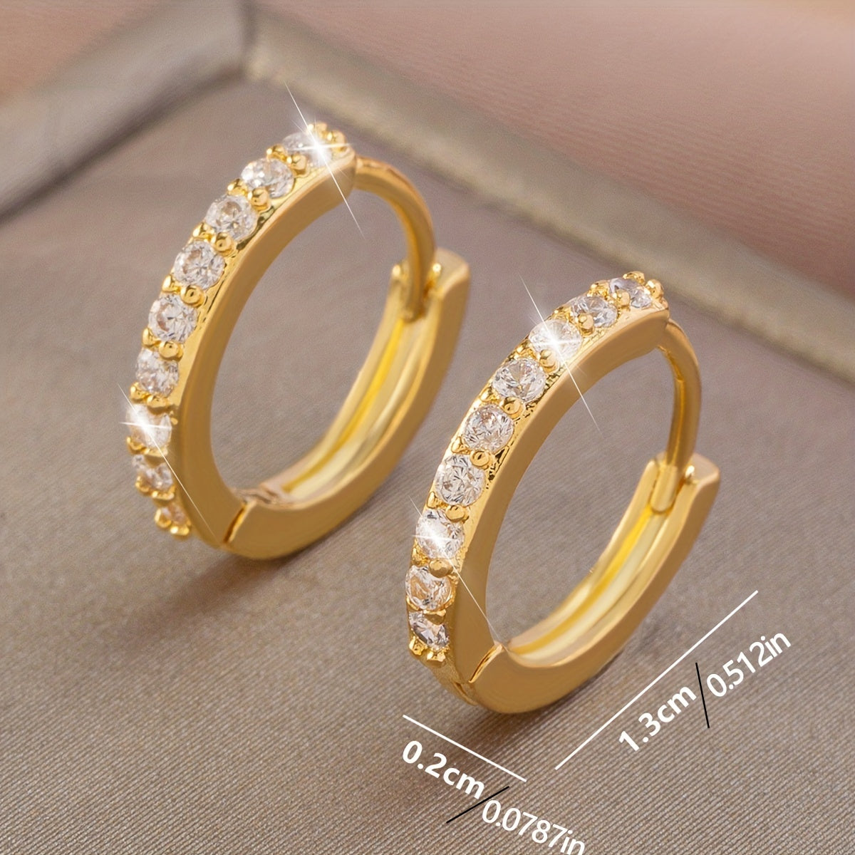 Elegant copper earrings with inlaid zirconia stones featuring a geometric circle design.
