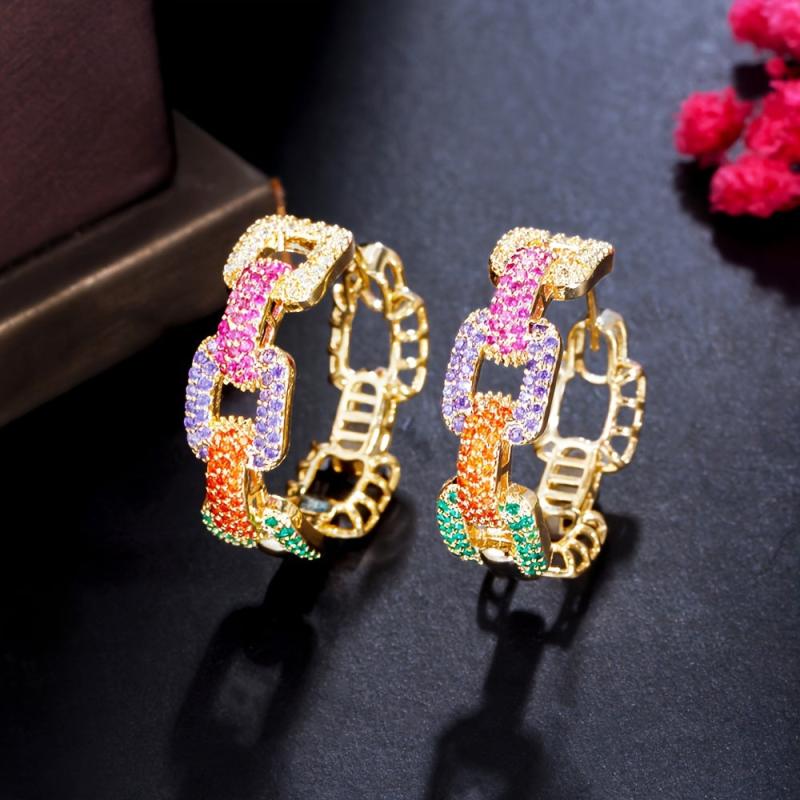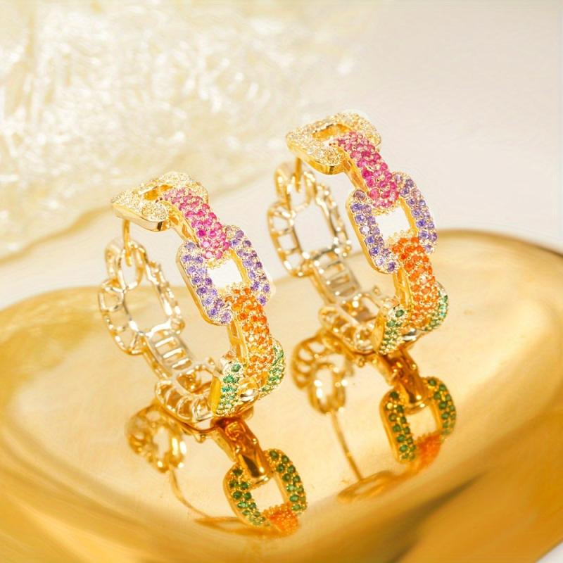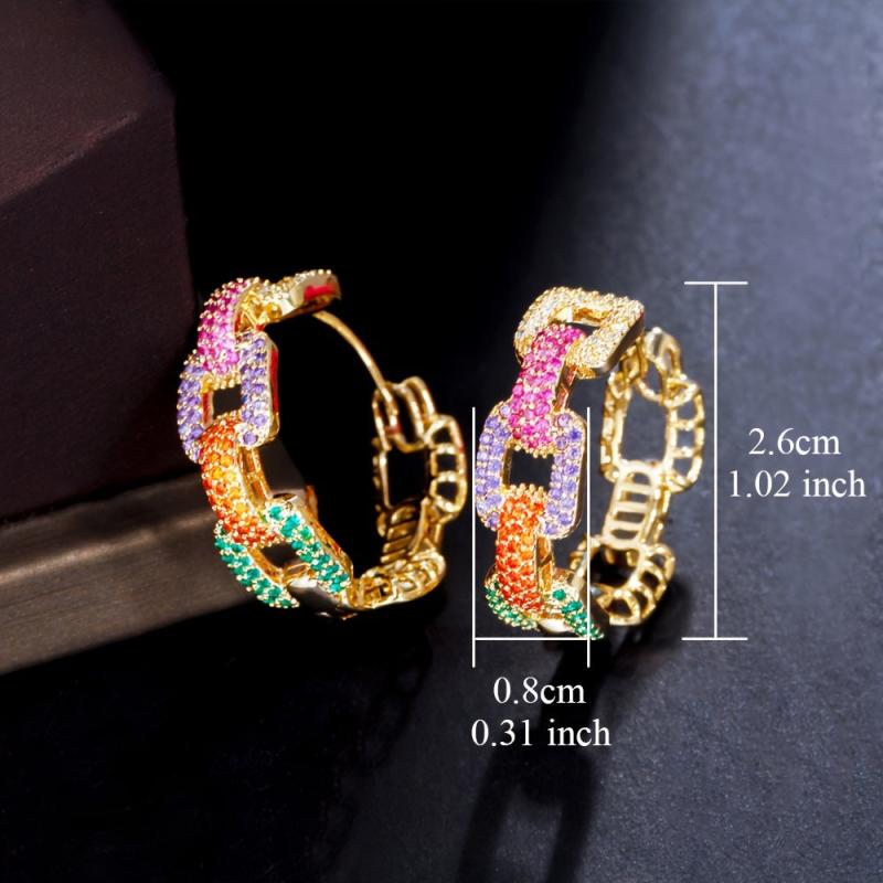Shine bright with these golden plated hoop earrings featuring vibrant multicolor micro pave cubic zirconia. Perfect for adding glam to parties or everyday wear.