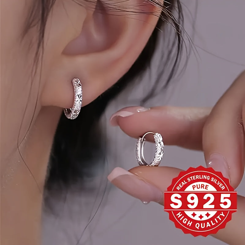 These sweet and unique earrings are made of S925 sterling silver with engraved daisy flowers, perfect for daily wear.
