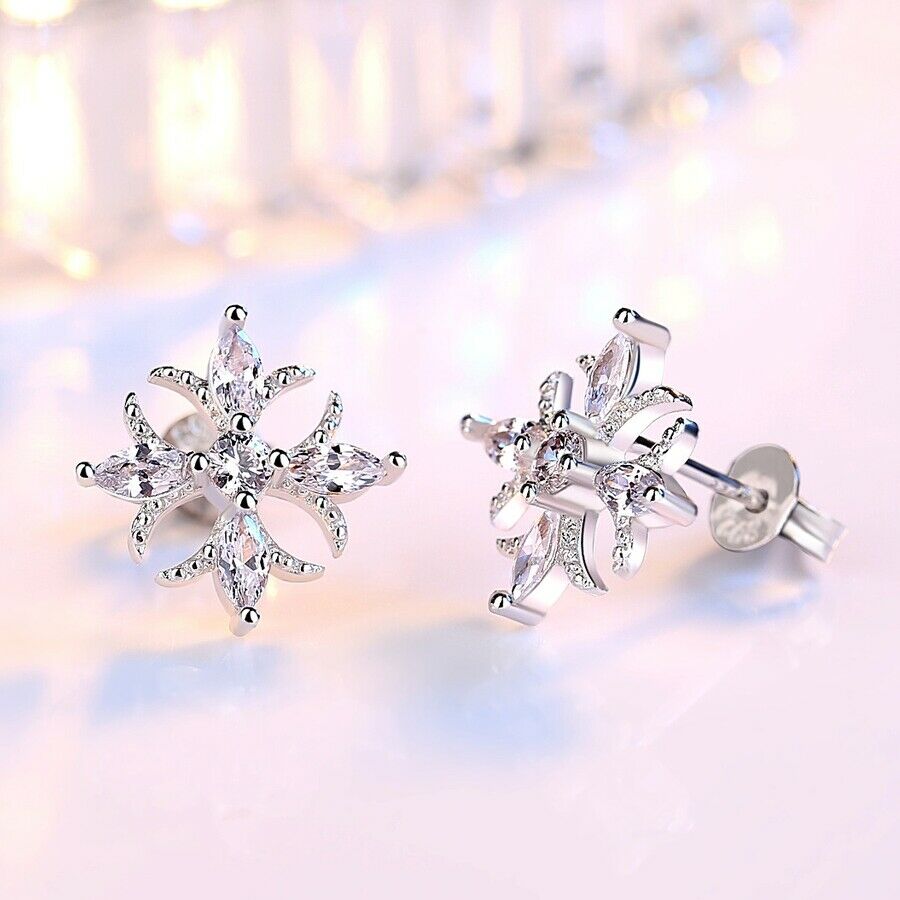 Blumenohrstecker mit Zirkonia für Damen mit Schmetterlingsverschluss