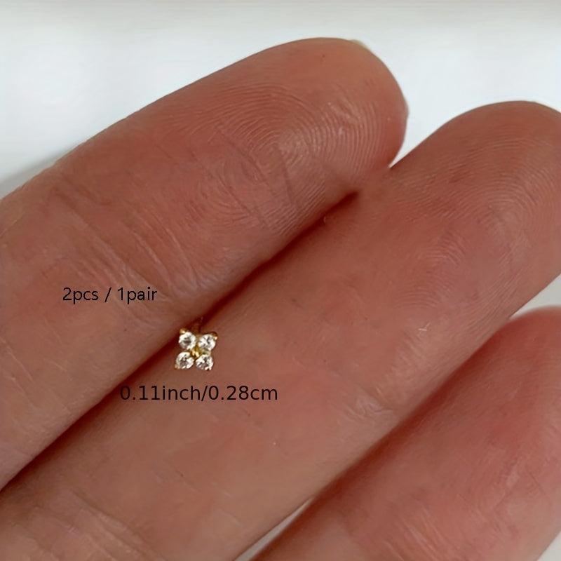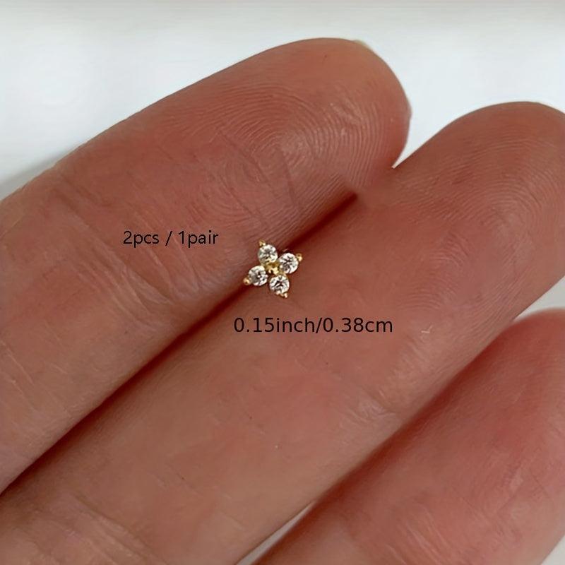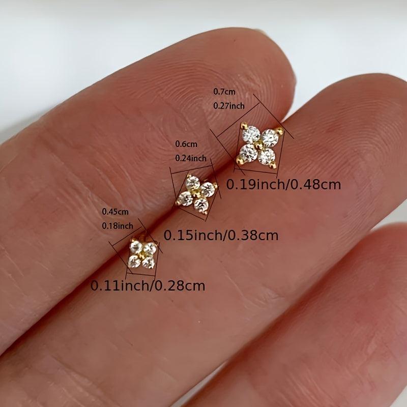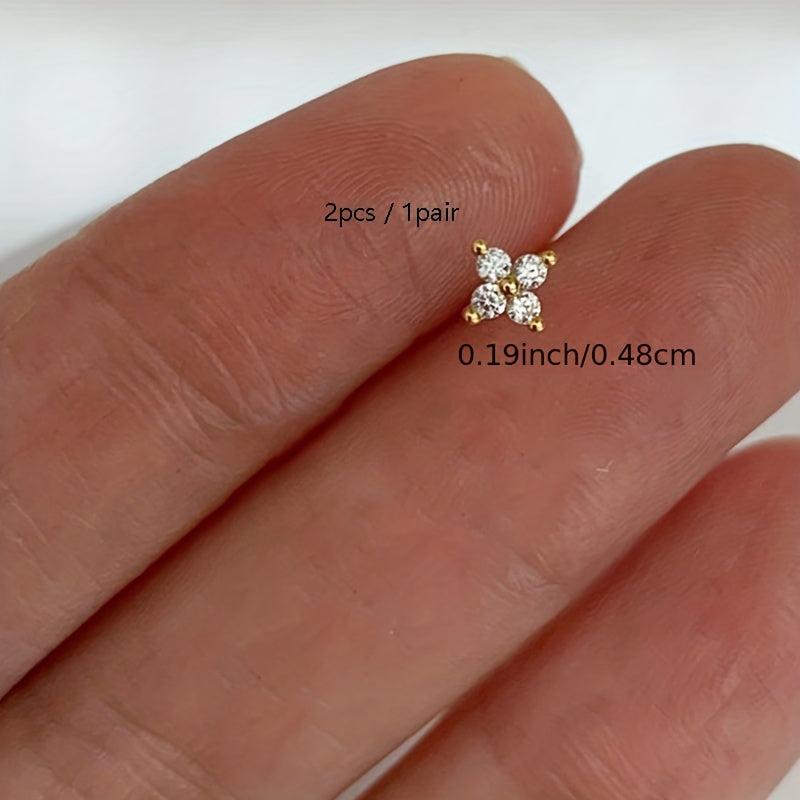 These mini flower-shaped stud earrings feature intricate zirconia inlay, perfect for daily wear.