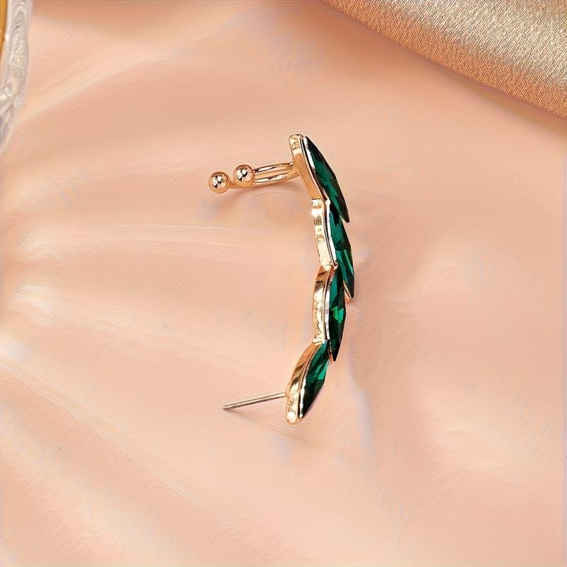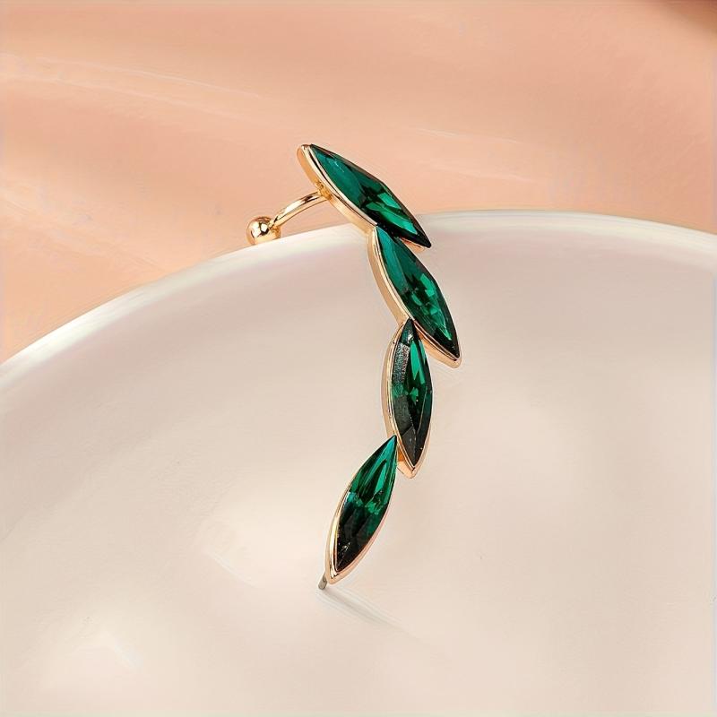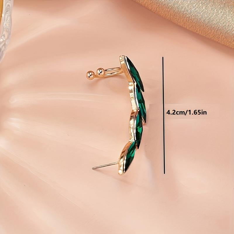 Add a touch of elegance to your look with this stylish two-in-one ear cuff and earring. Featuring a beautiful horse eye-shaped green rhinestone, this piece is perfect for daily wear or party occasions.