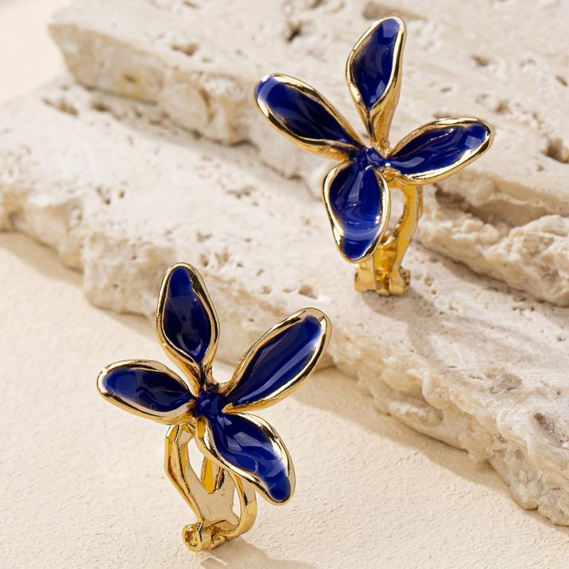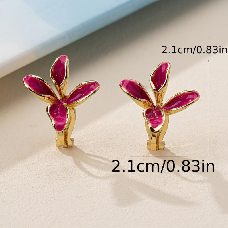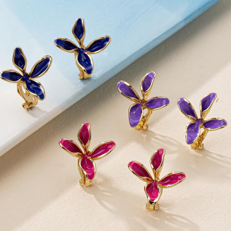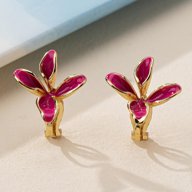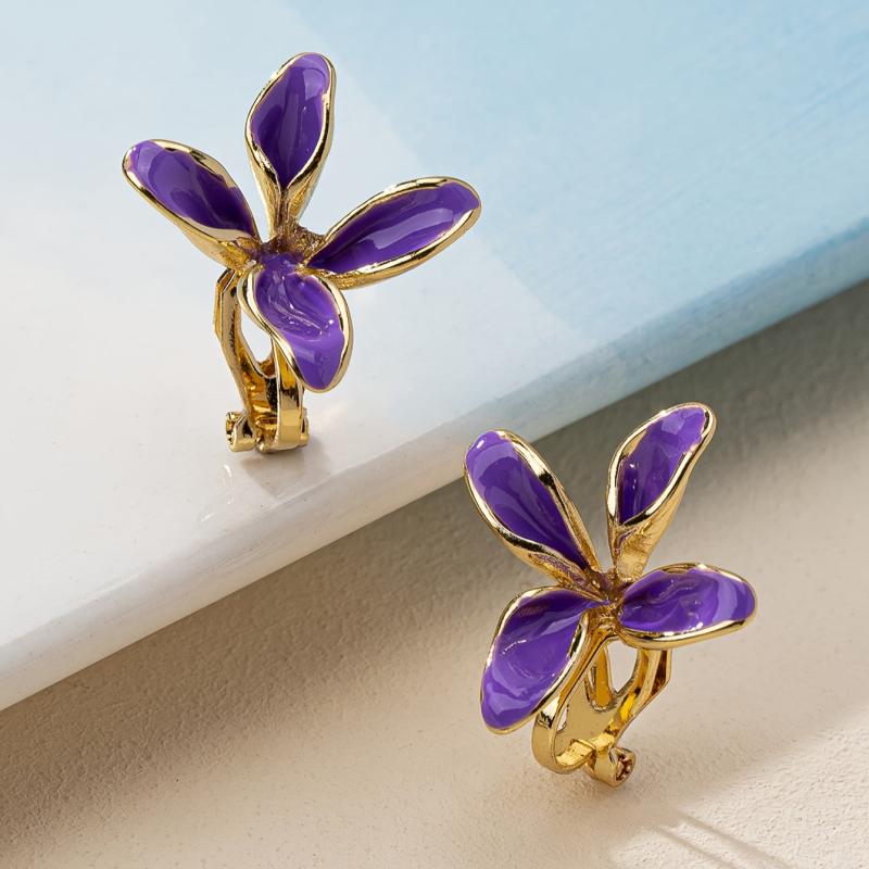 These floral clip-on earrings are made of zinc alloy with copper posts and nickel plating. Perfect for everyday wear.