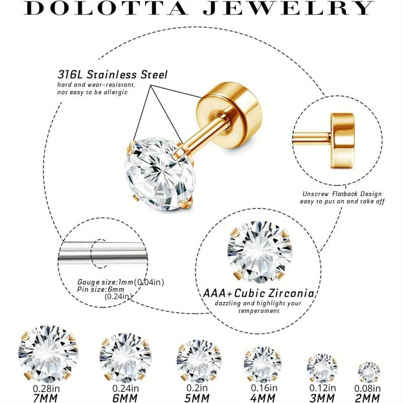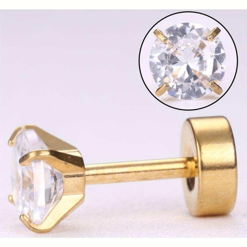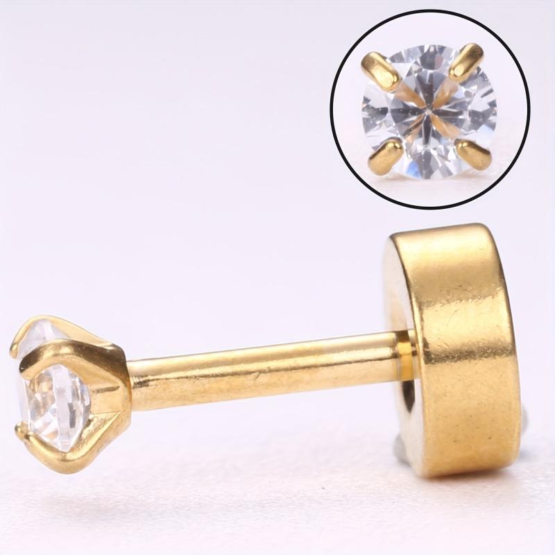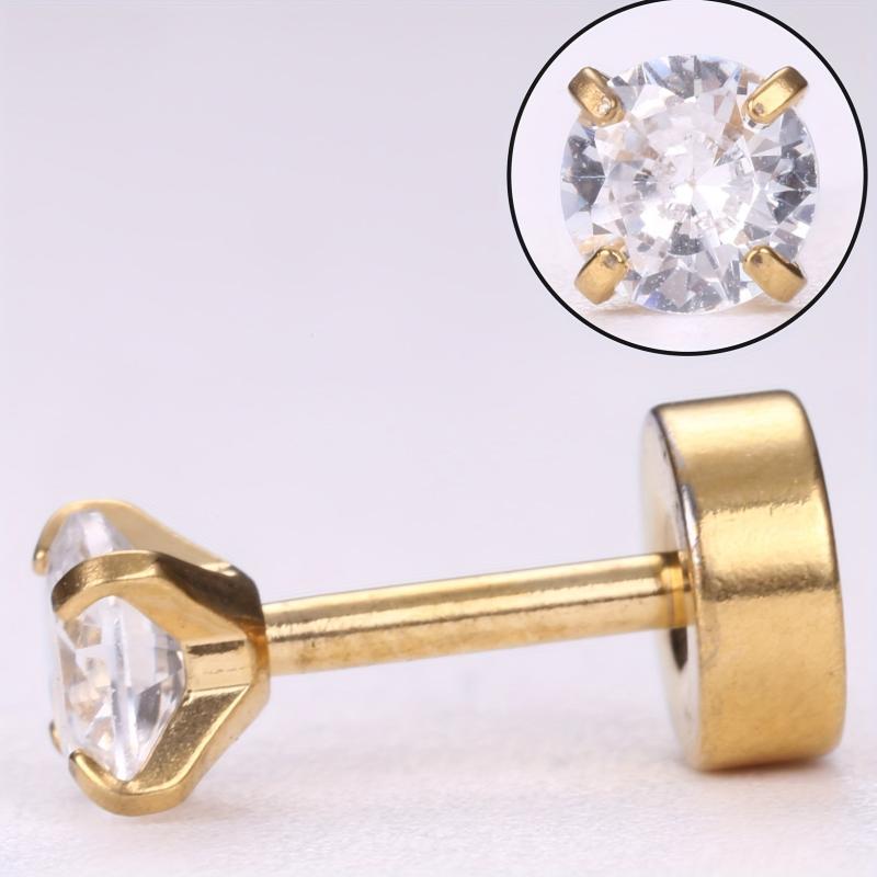This single 18G stainless steel CZ stud earring is perfect for cartilage piercings. It features a 2.7mm round CZ barbell stud with a screw flat ball back for a secure fit.