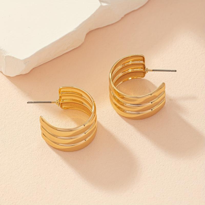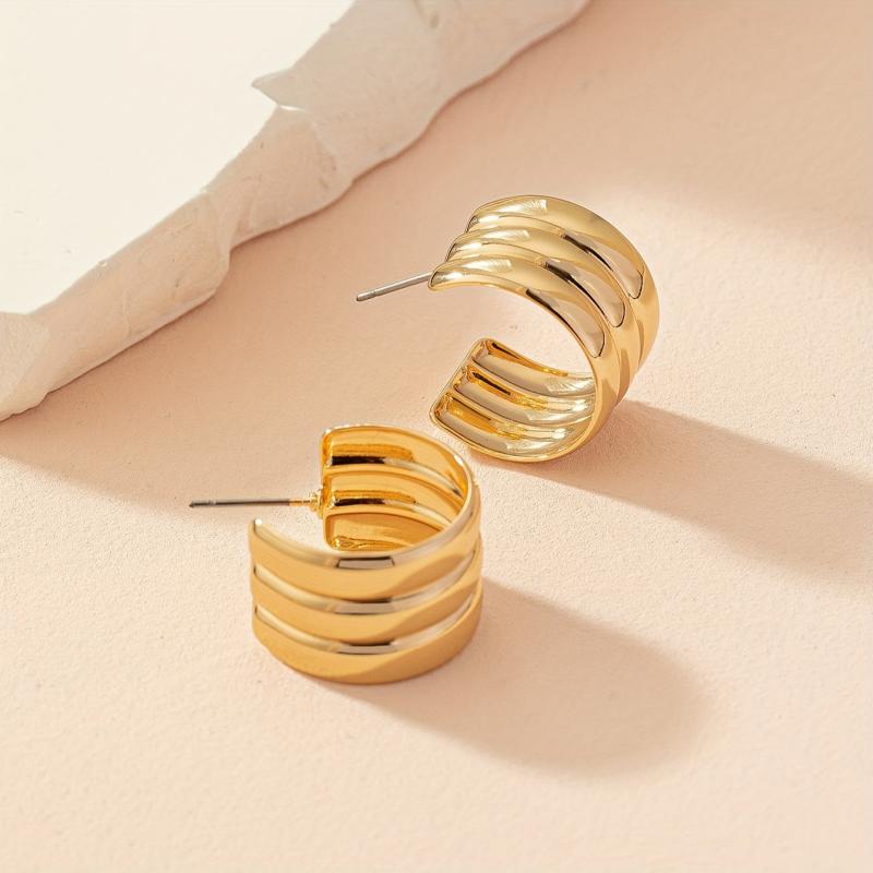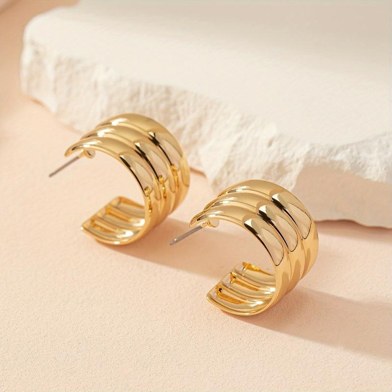 Add a touch of French style to your look with these sexy C-shaped wide face hoop earrings. Crafted with iron and alloy posts, these versatile earrings are perfect for daily wear or party occasions.