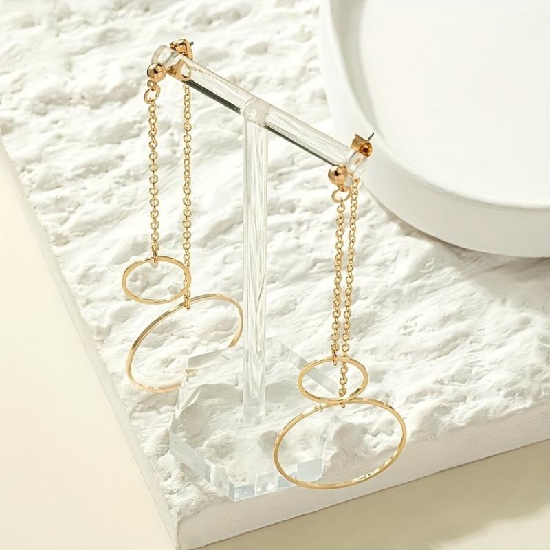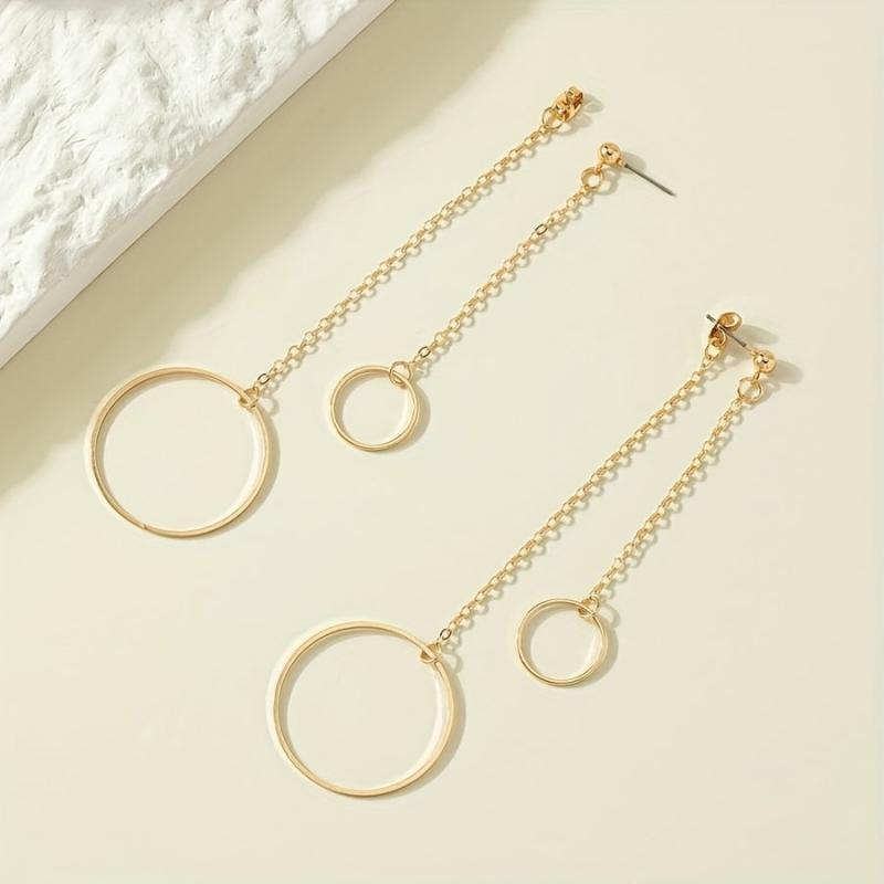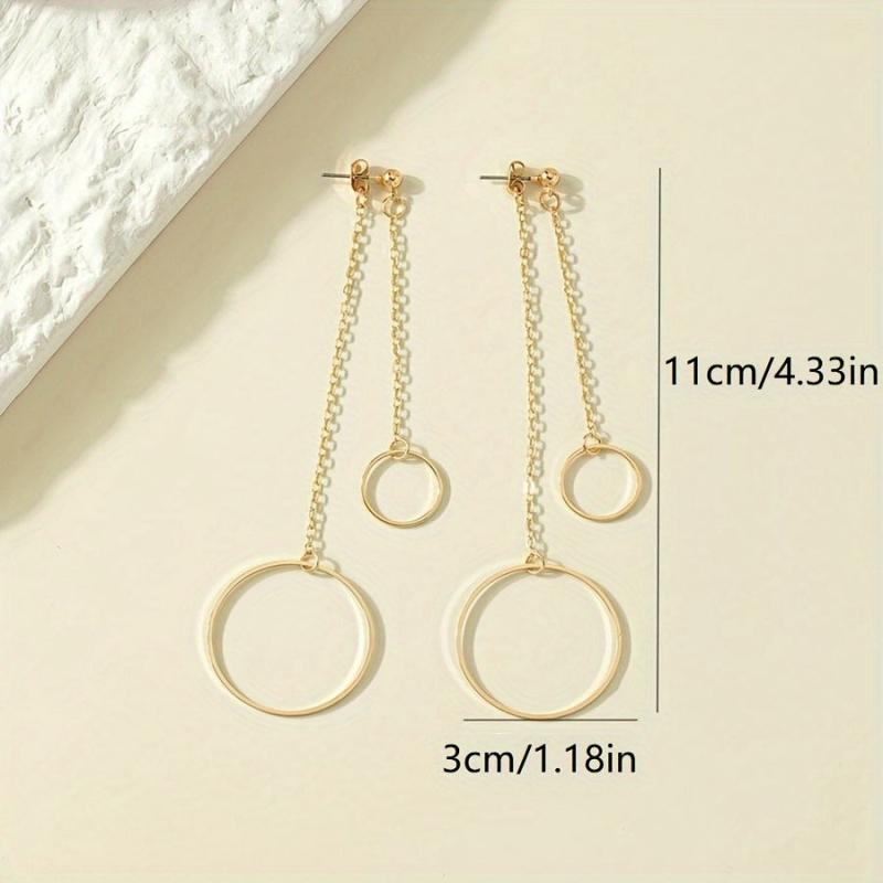 Add a touch of elegance to your casual attire this spring with these long chain dangle earrings featuring geometric circles. Made from high-quality alloy material.