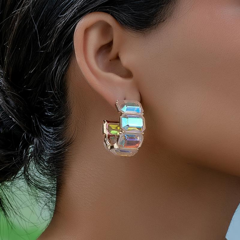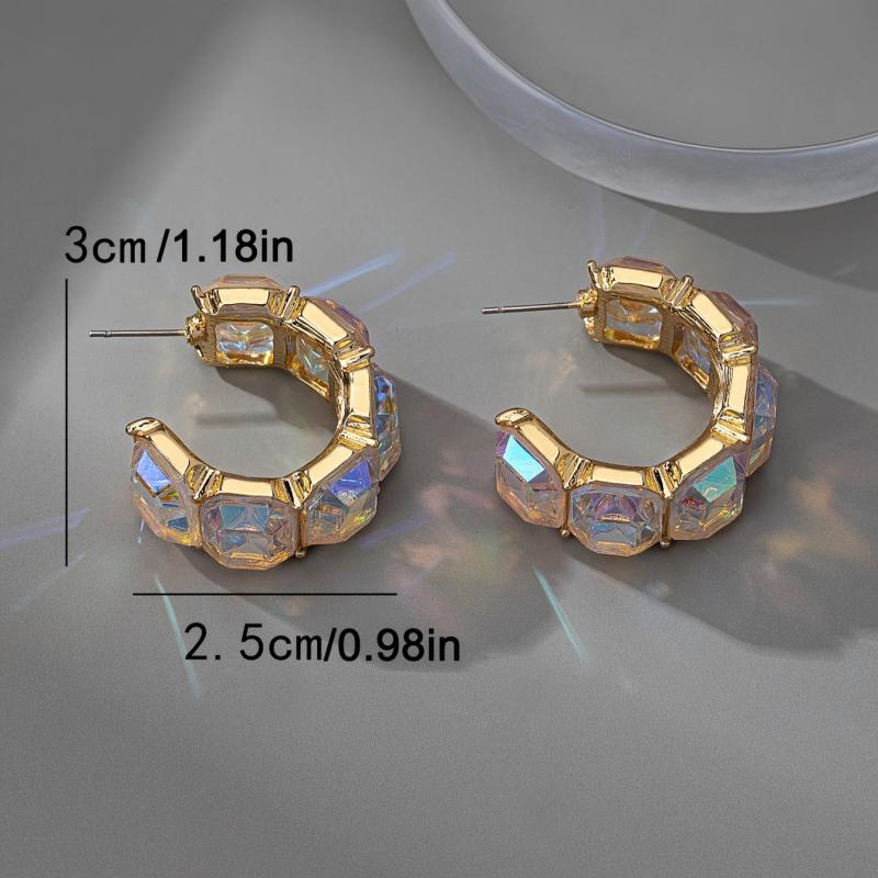Add a touch of glamour to your outfit with these glitter hoop earrings. Made from 18K golden plated zinc alloy with resin mosaic, these earrings are versatile for daily wear and parties.