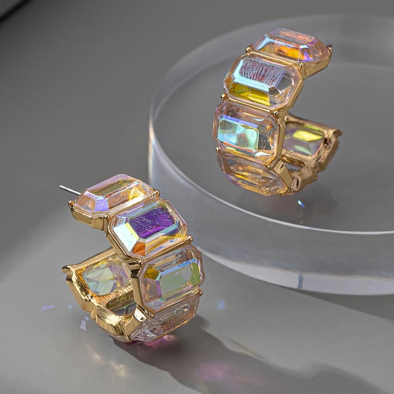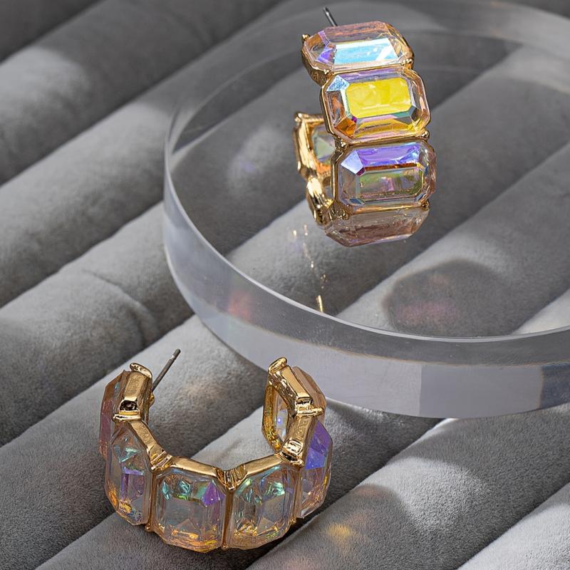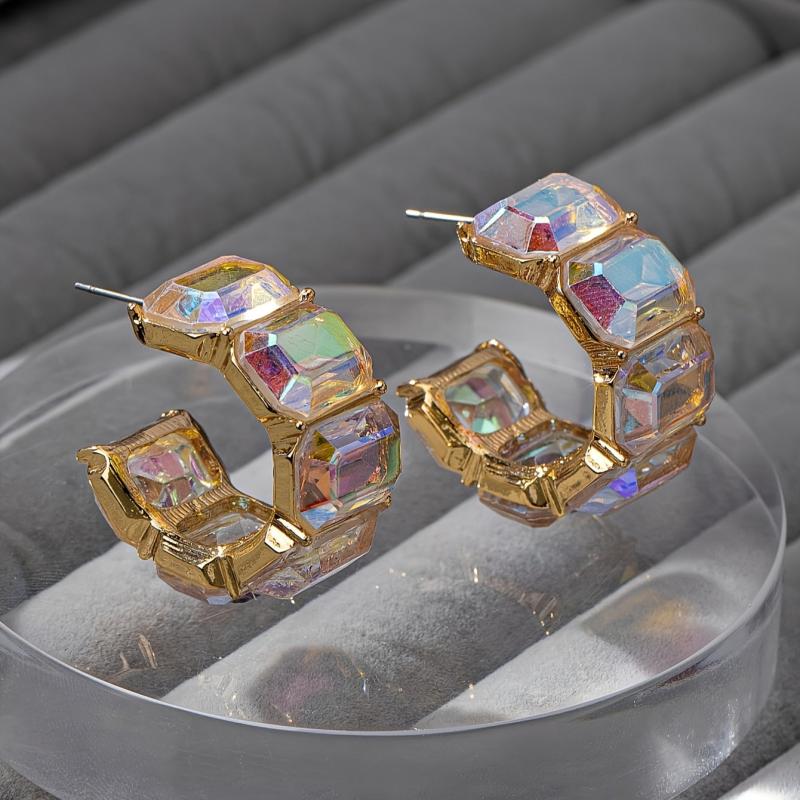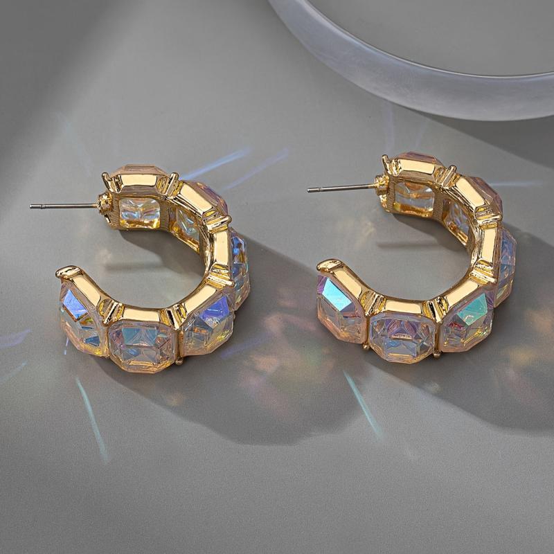 Glitter Hoop Earrings 18K Golden Plated Zinc Alloy Resin Mosaic Iron Post