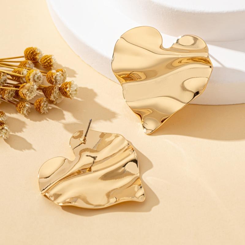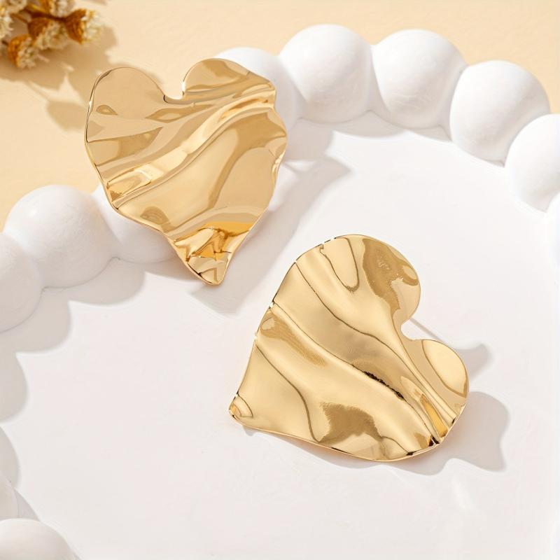 Add a touch of elegance with these heart-shaped stud earrings. Crafted from iron and copper, they are perfect for everyday wear or special occasions.