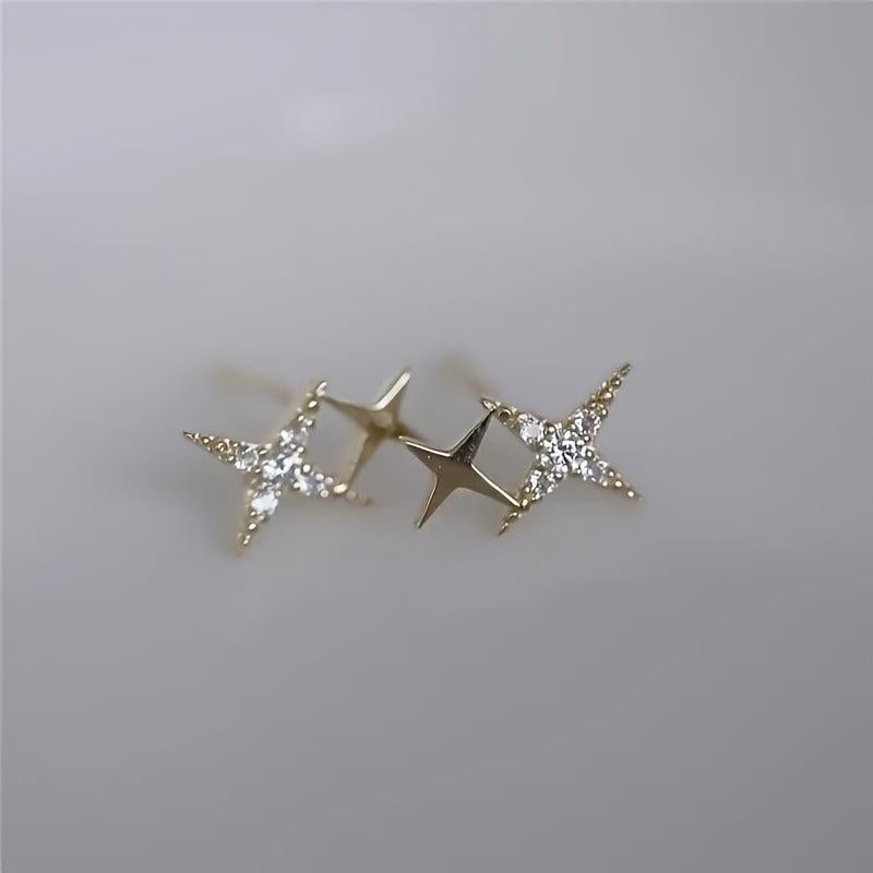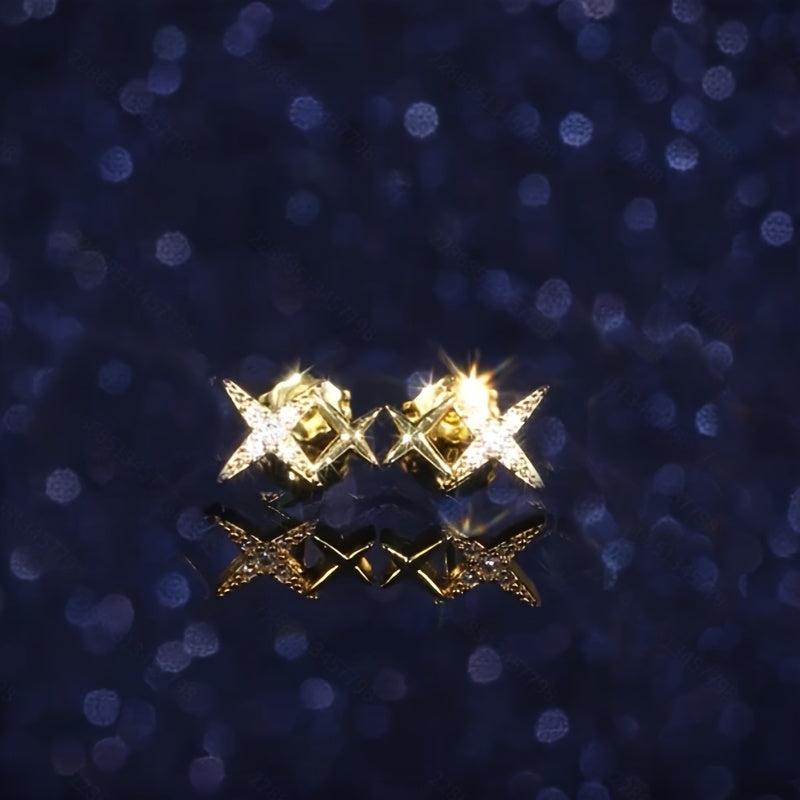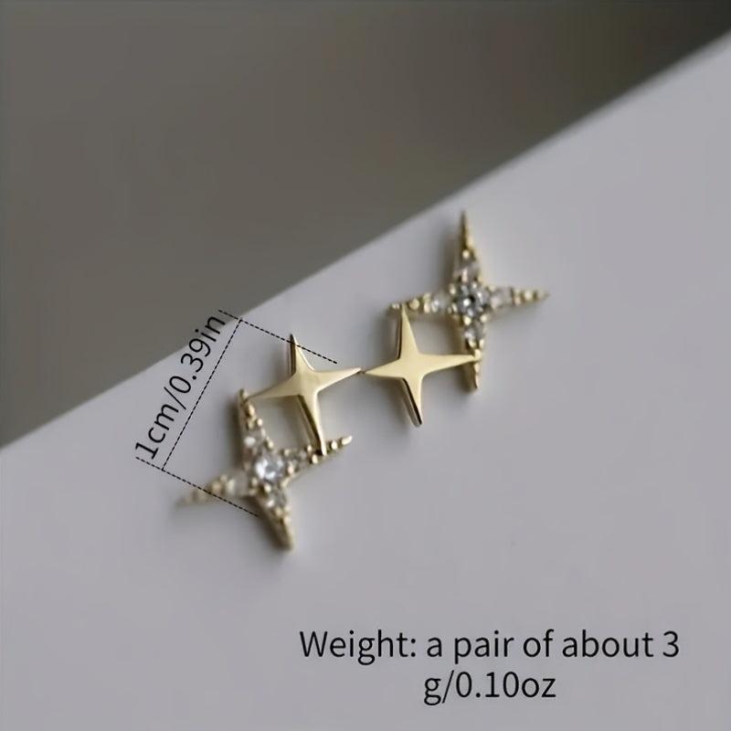 Add a touch of elegance to your outfit with these golden tone star stud earrings featuring synthetic zirconia. Made with high-quality stainless steel for durability and style.