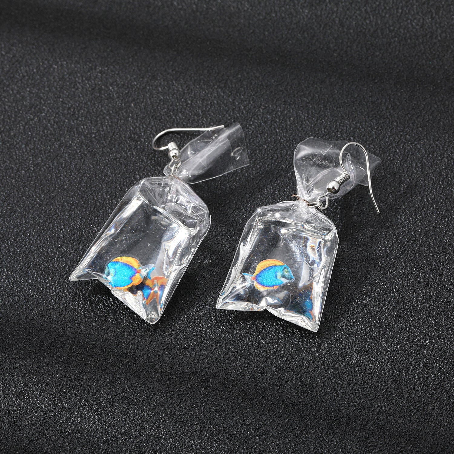 Goldfish Water Bag Drop Earrings Ocean Animal Pendant