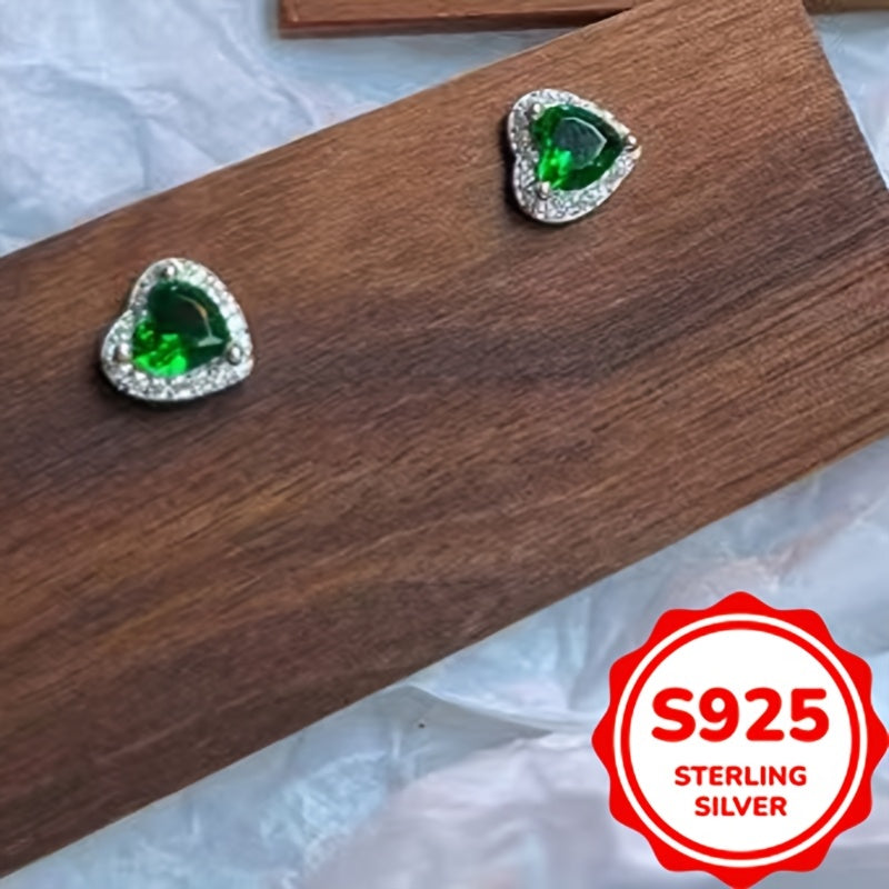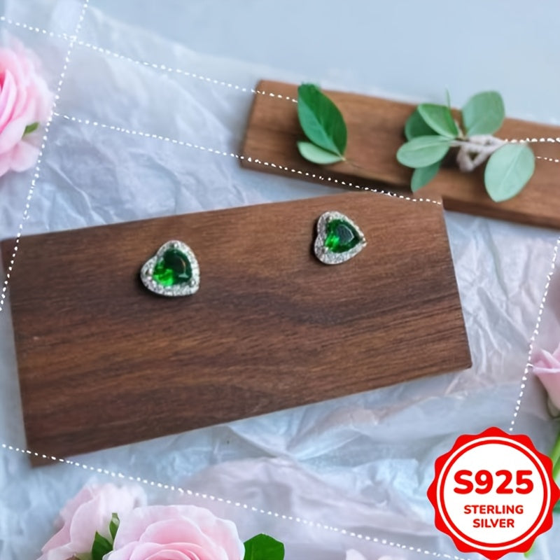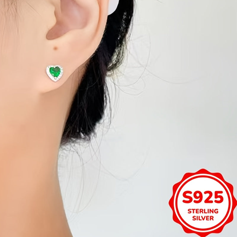 Add a pop of color to your outfit with these green zirconia heart shaped earrings. Made of S925 sterling silver, these earrings are lightweight and perfect for daily wear or special occasions.