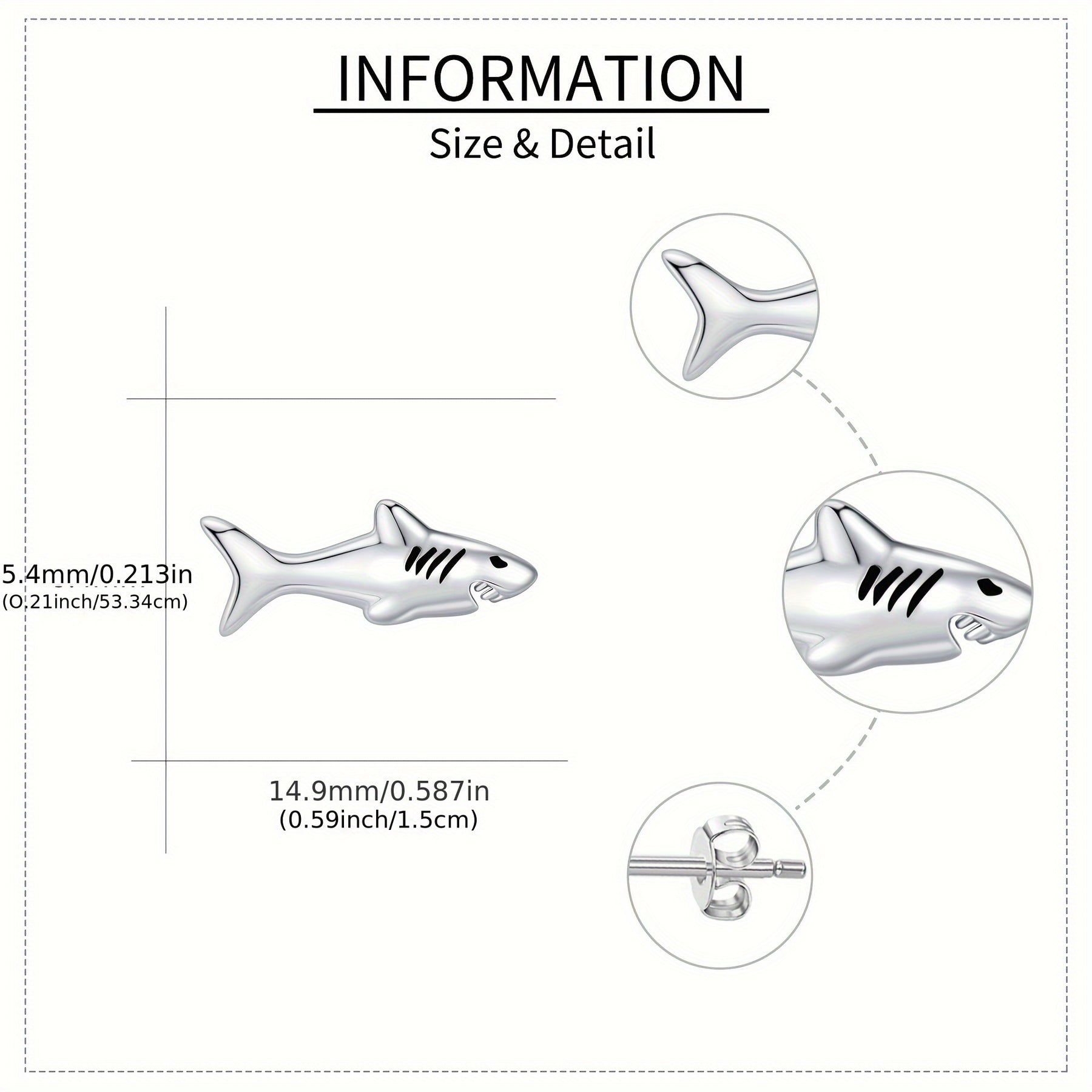 Shark Stud Earrings 925 Sterling Silver Shark Earrings