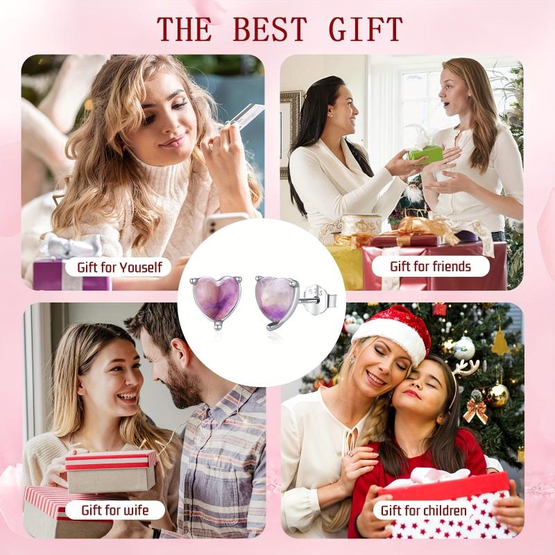 These heart shaped earrings are made of high-quality 925 sterling silver and feature sparkling crystals. They are hypoallergenic, making them perfect for women with sensitive ears. The ideal gift for holidays or birthdays.