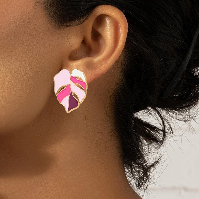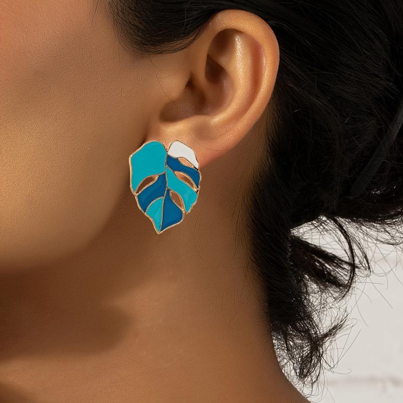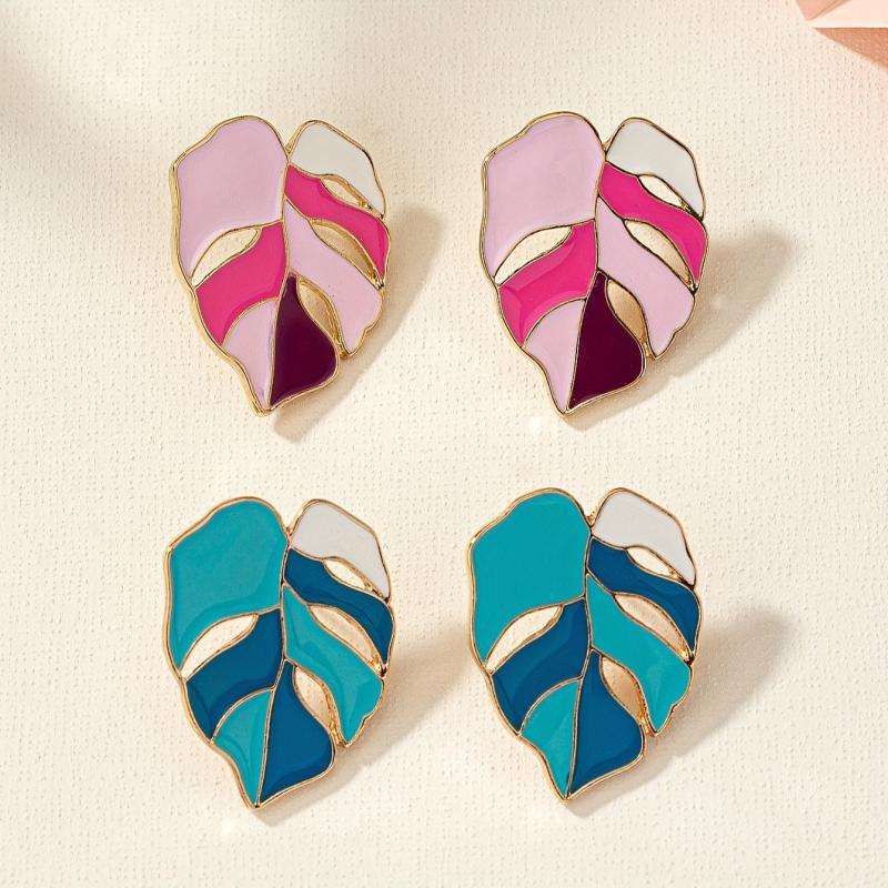 Elegant and trendy leaf stud earrings made of zinc alloy for fashionable ear piercing.