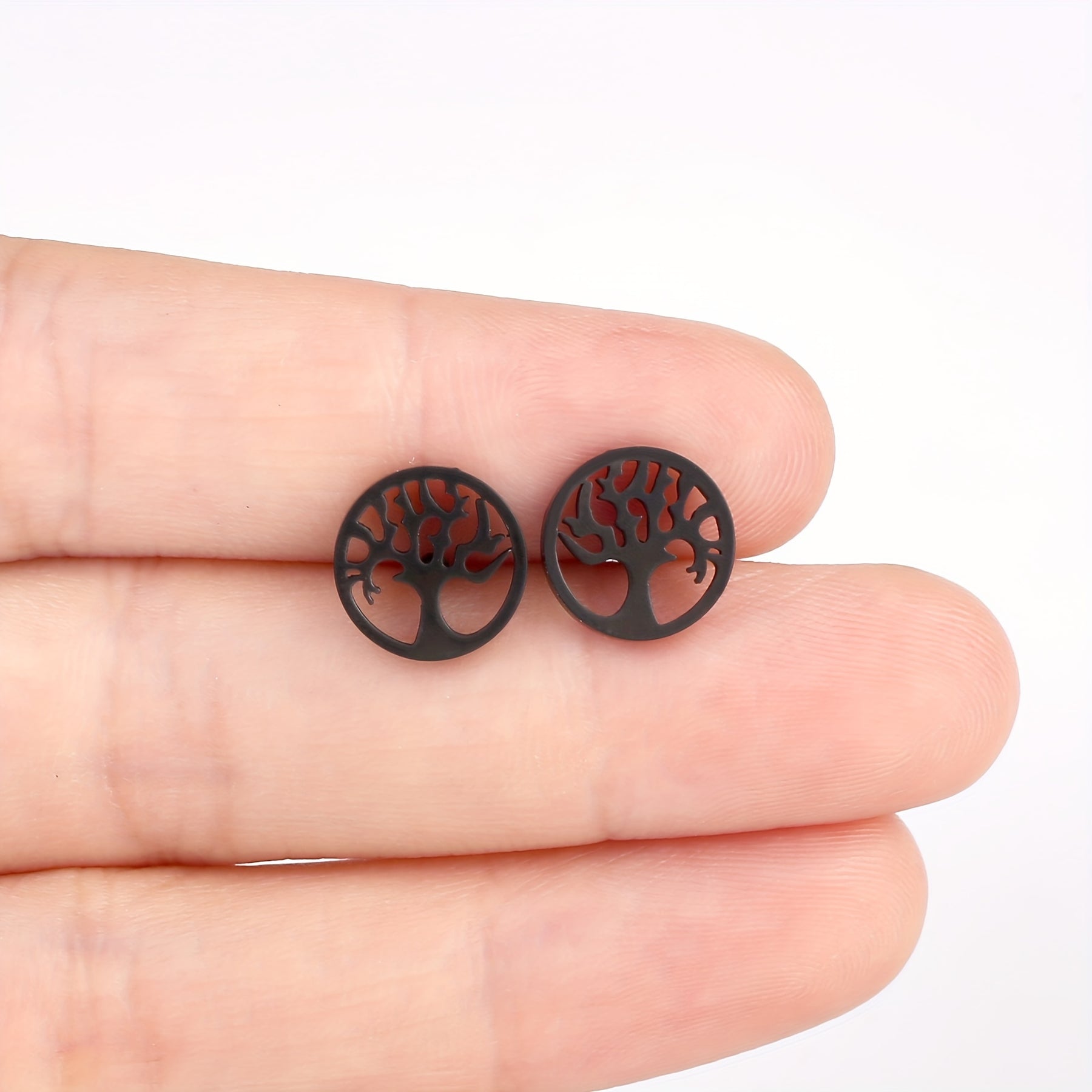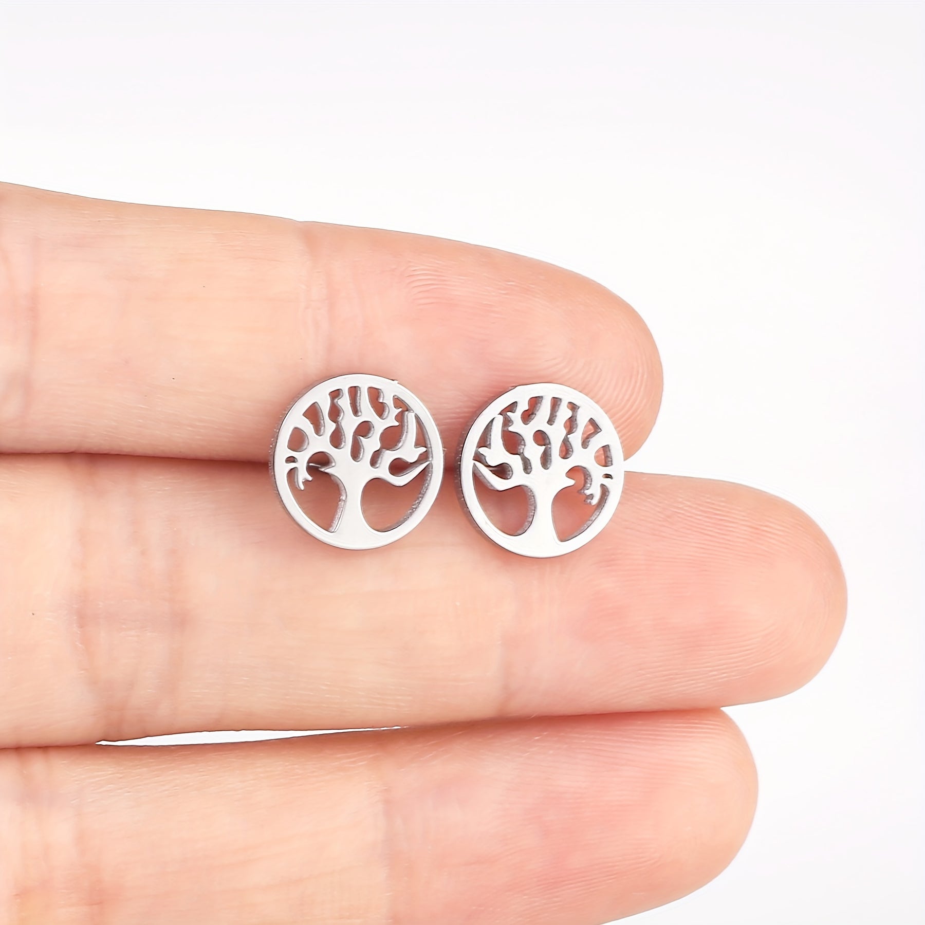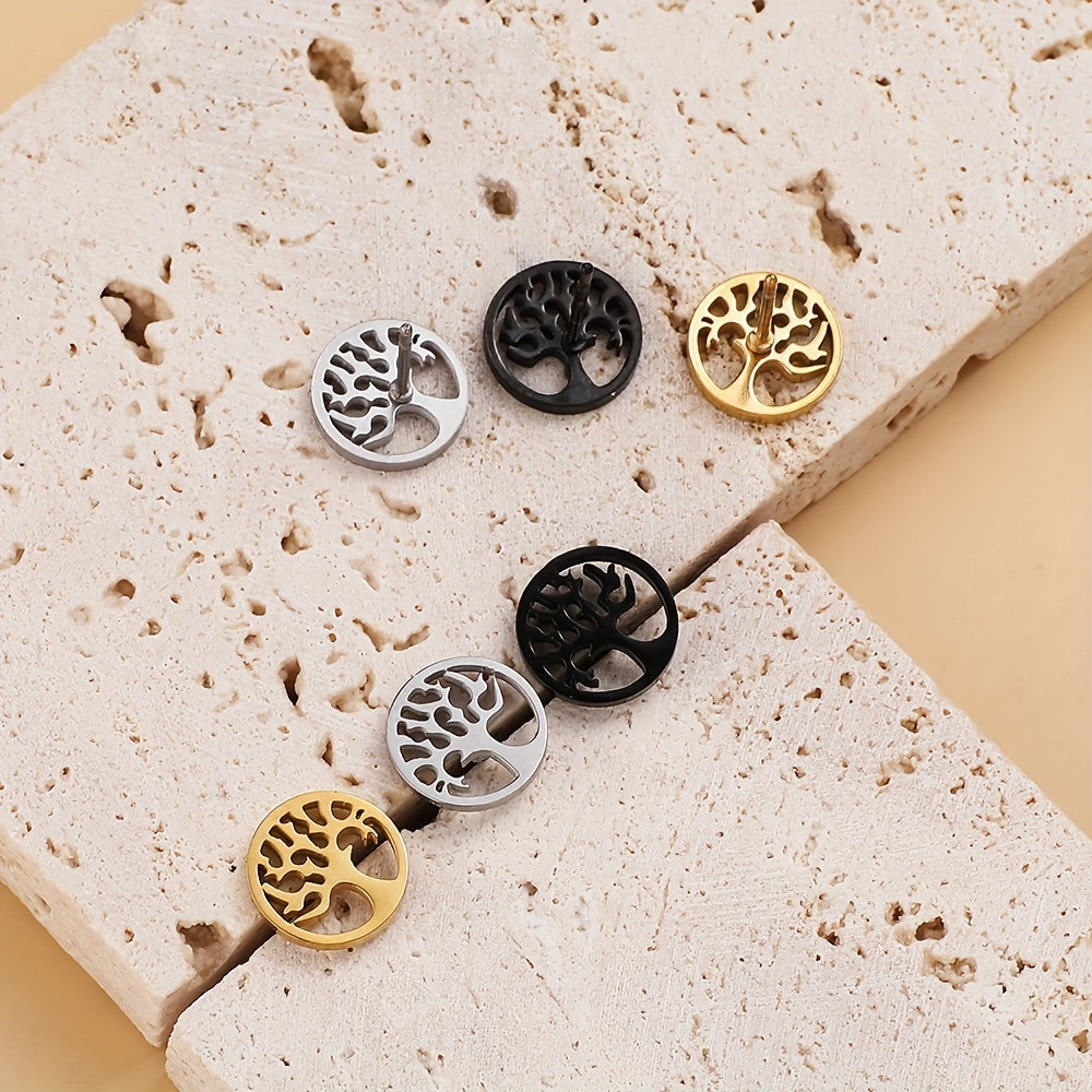 Elegant and stylish stud earrings featuring a life tree hollow circle design. Made of stainless steel with 18K gold plating, perfect for women and girls.