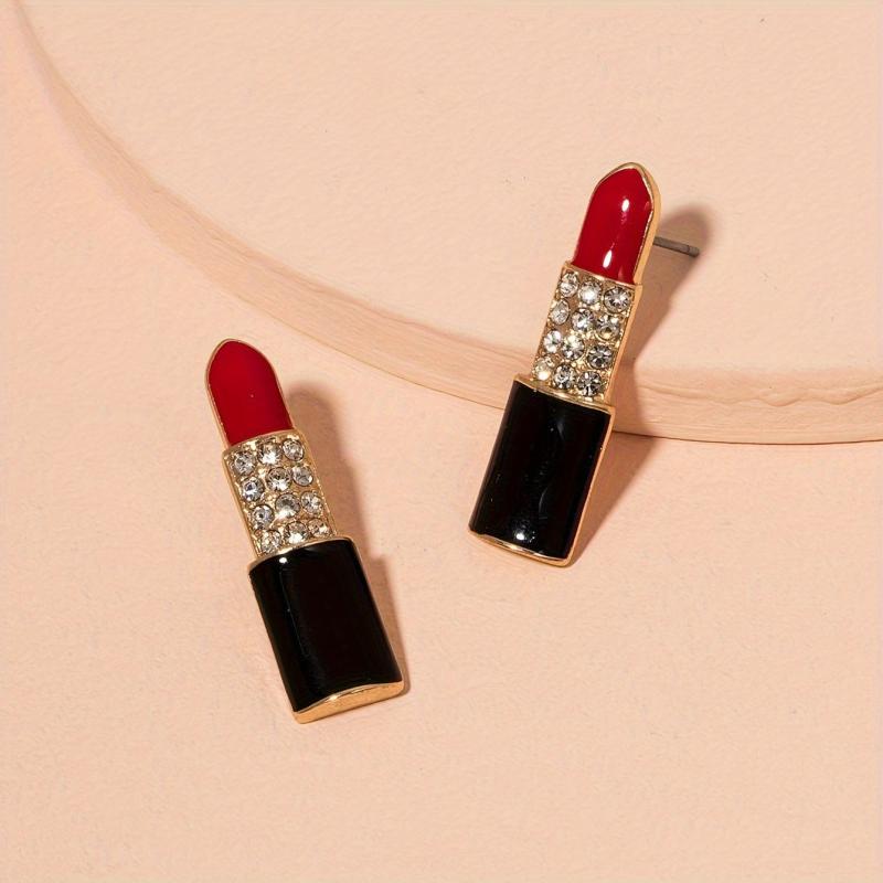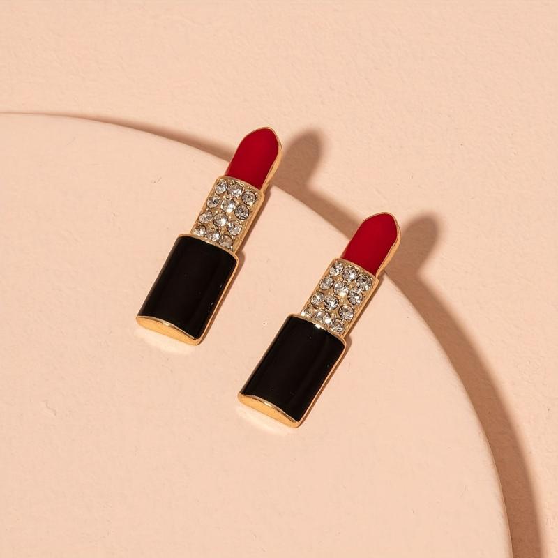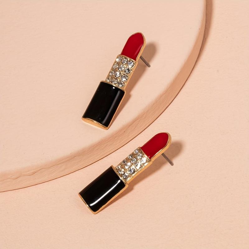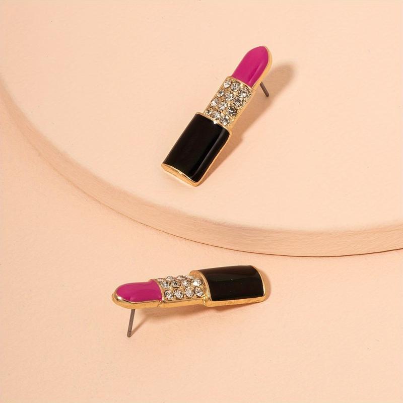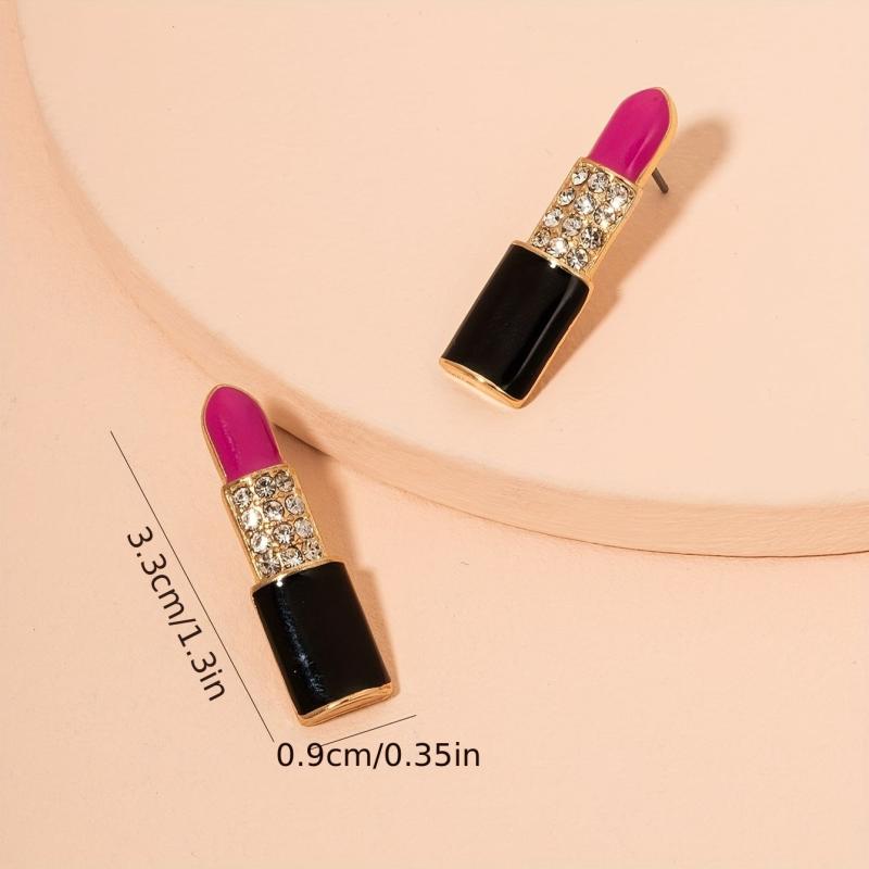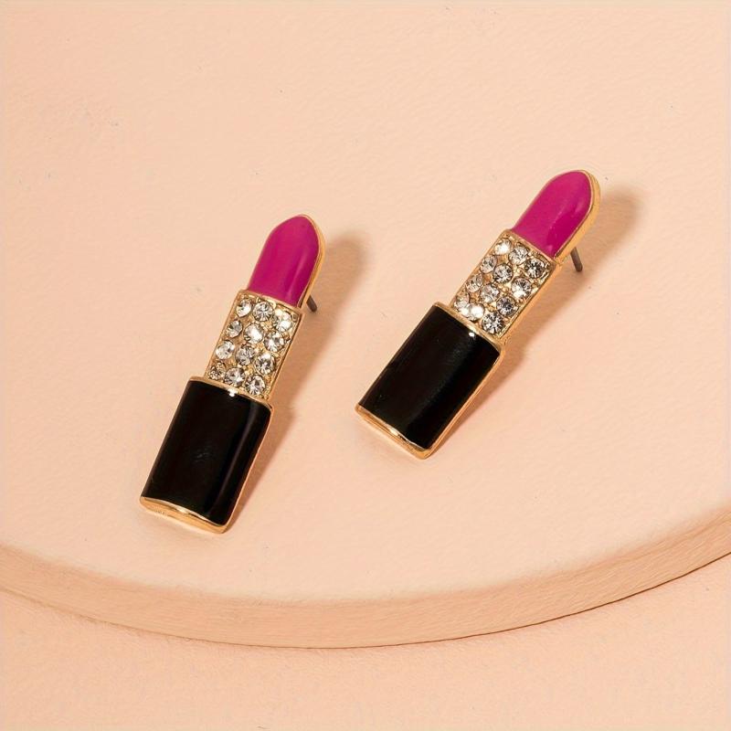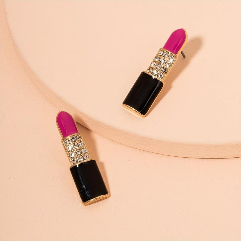 • Lip shaped earrings with glossy pink gemstones