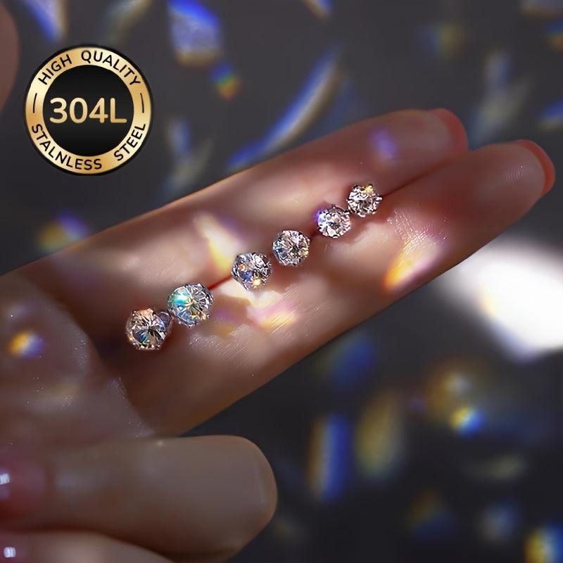 Elegant and hypoallergenic 304L stainless steel earrings with synthetic zirconia, perfect for weddings. Colorfast and stylish design.