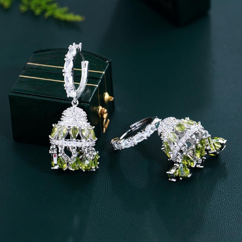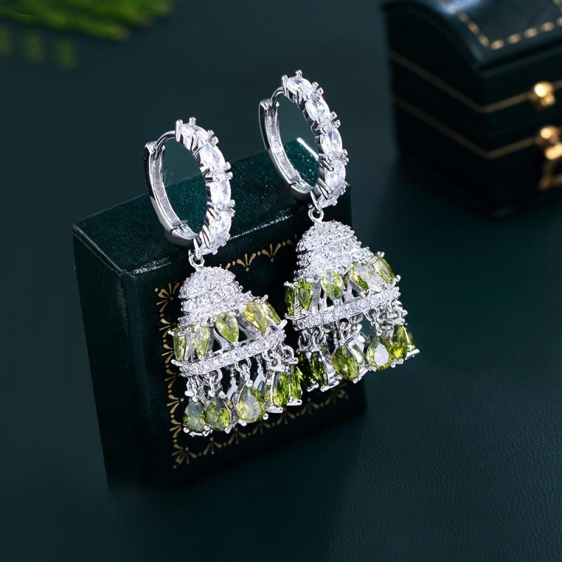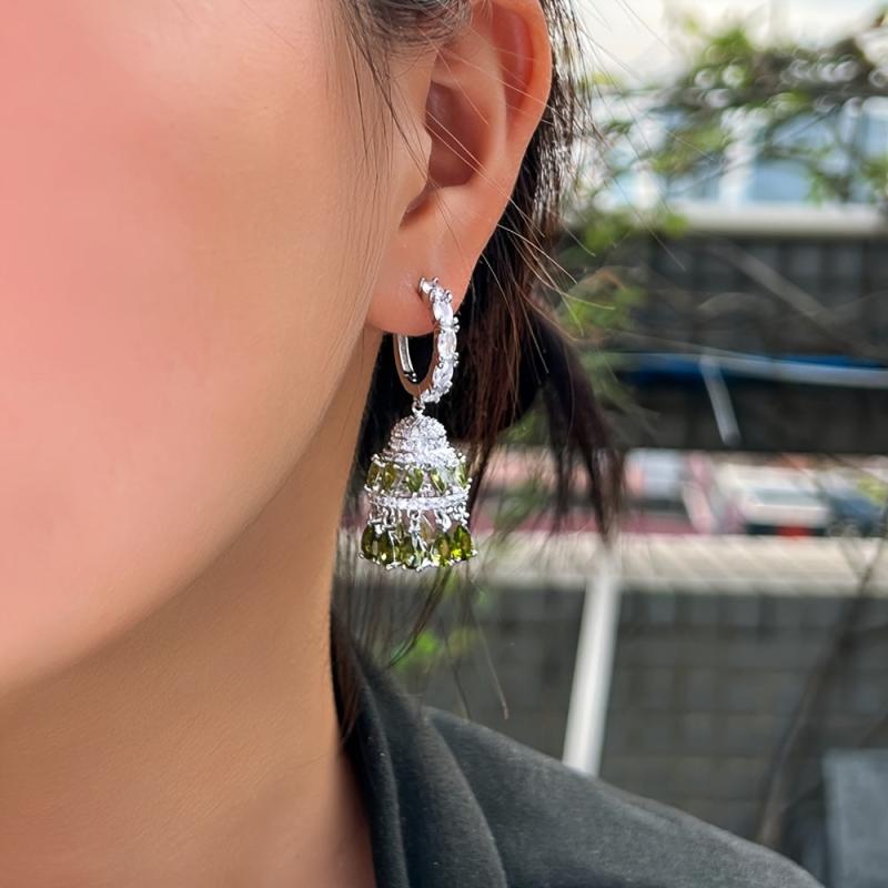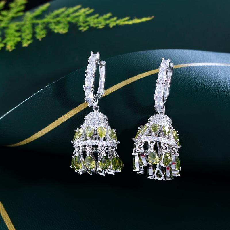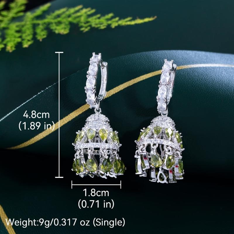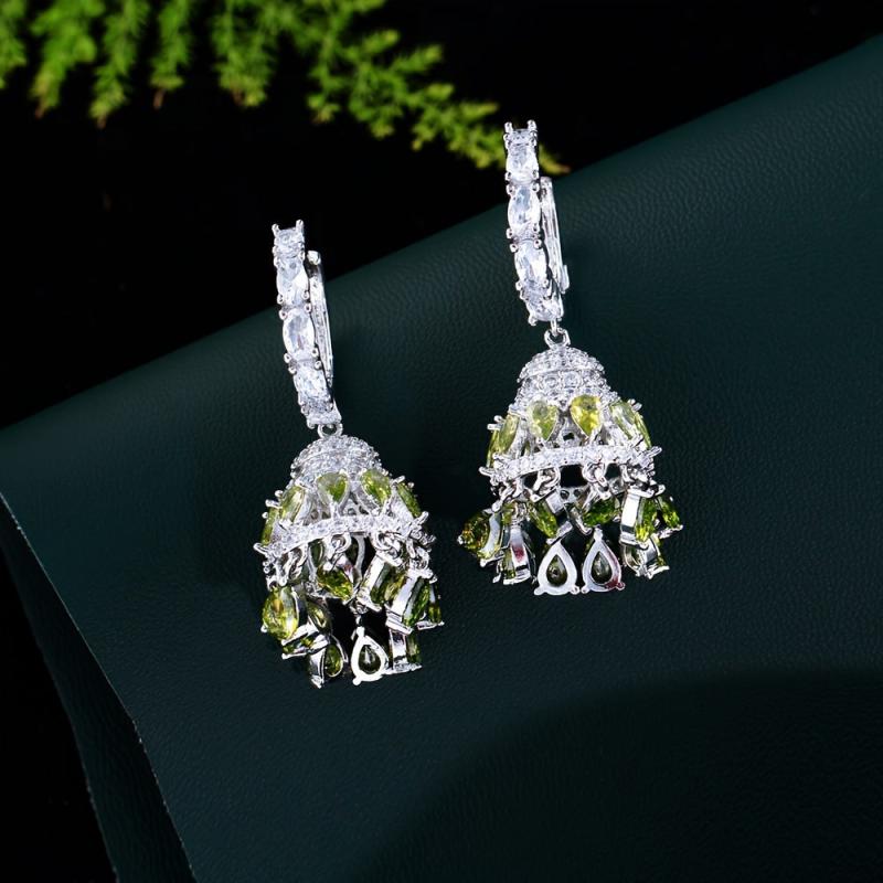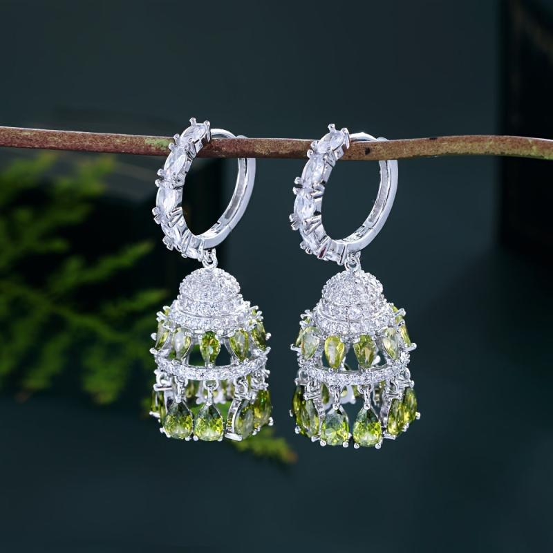 These stunning tassel earrings feature olive green synthetic zirconia in a long water drop design. Perfect for weddings, parties, and dates.