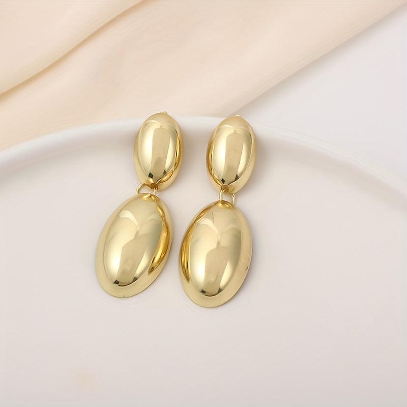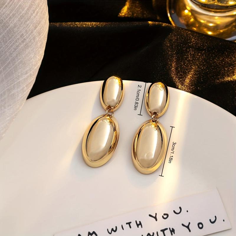 These oval earrings are designed to be both stylish and versatile, making them suitable for all four seasons. Their sleek design adds a touch of elegance to any outfit.