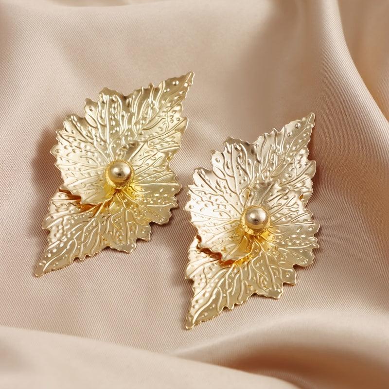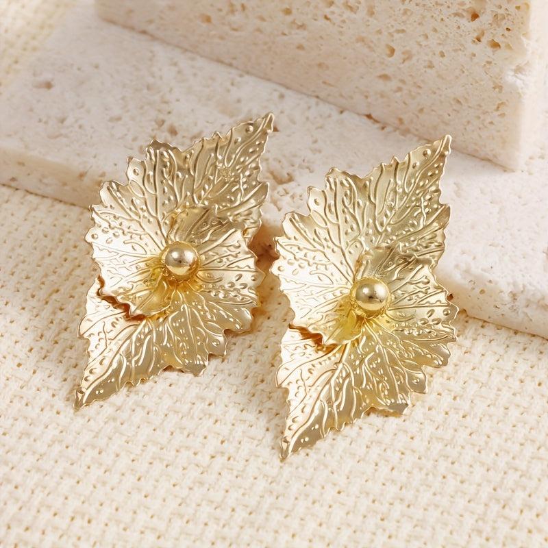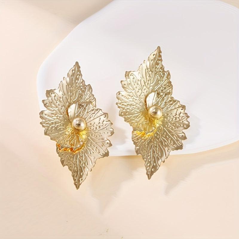Retro Exaggerated Metal Ginkgo Leaf Earrings Female Accessories
