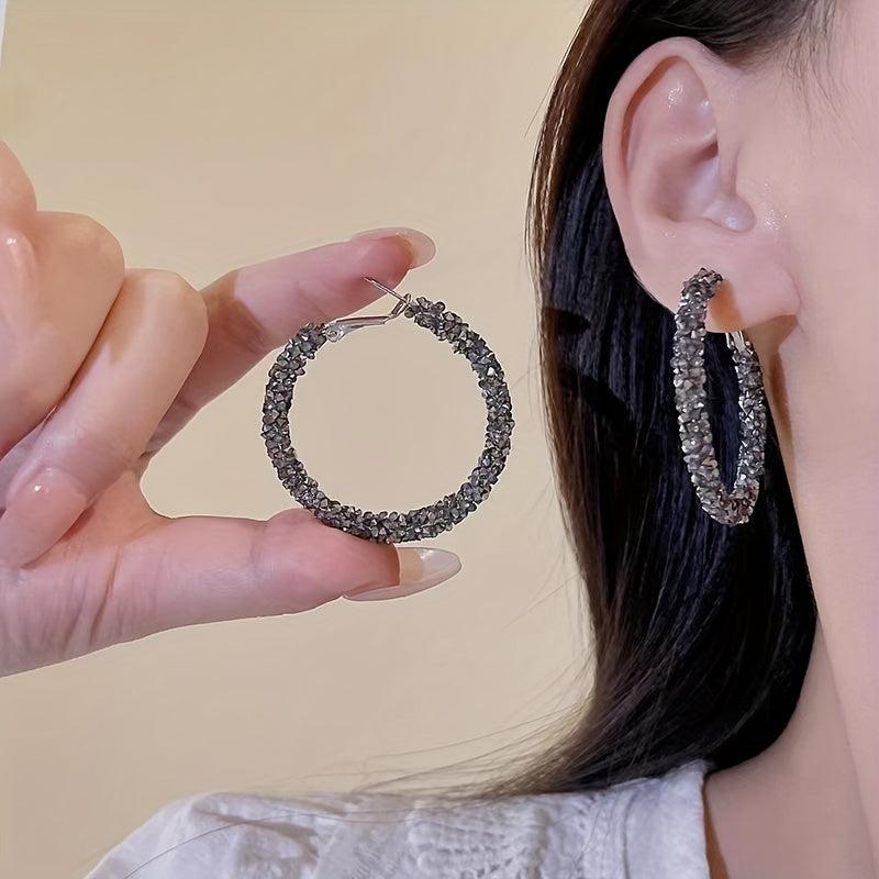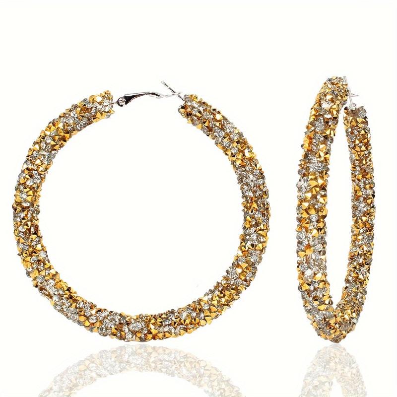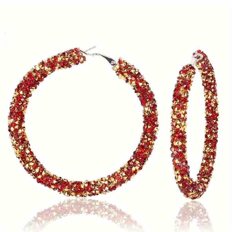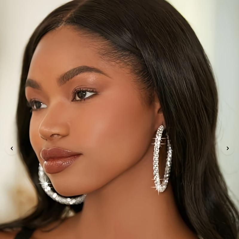 Sparkle and shine with these full rhinestone inlaid hoop earrings. Perfect for adding glamour to your outfit at banquets and parties.