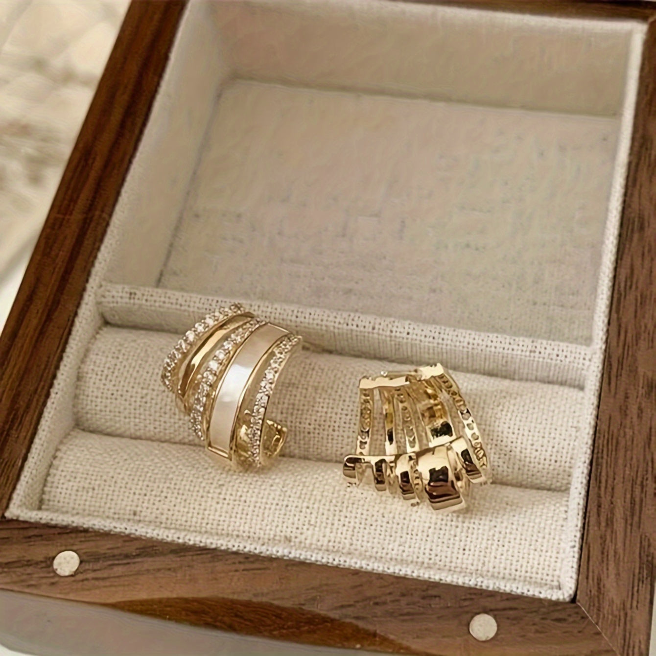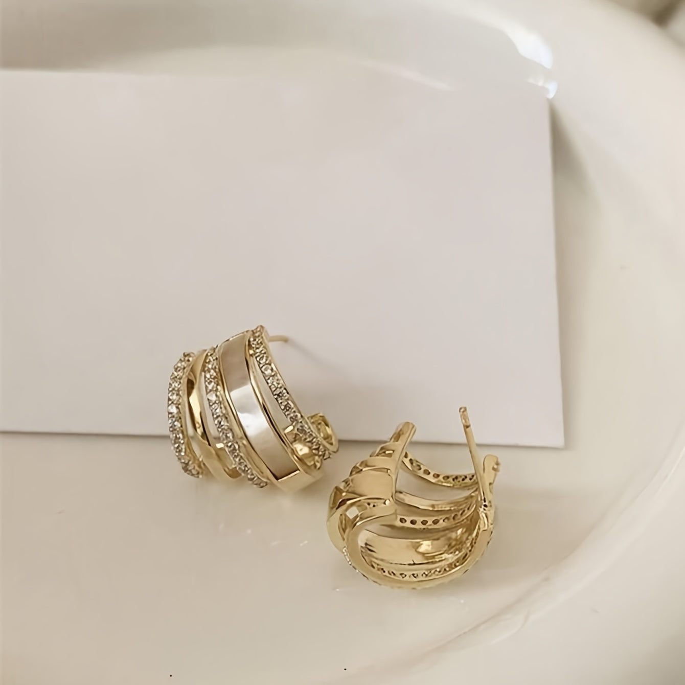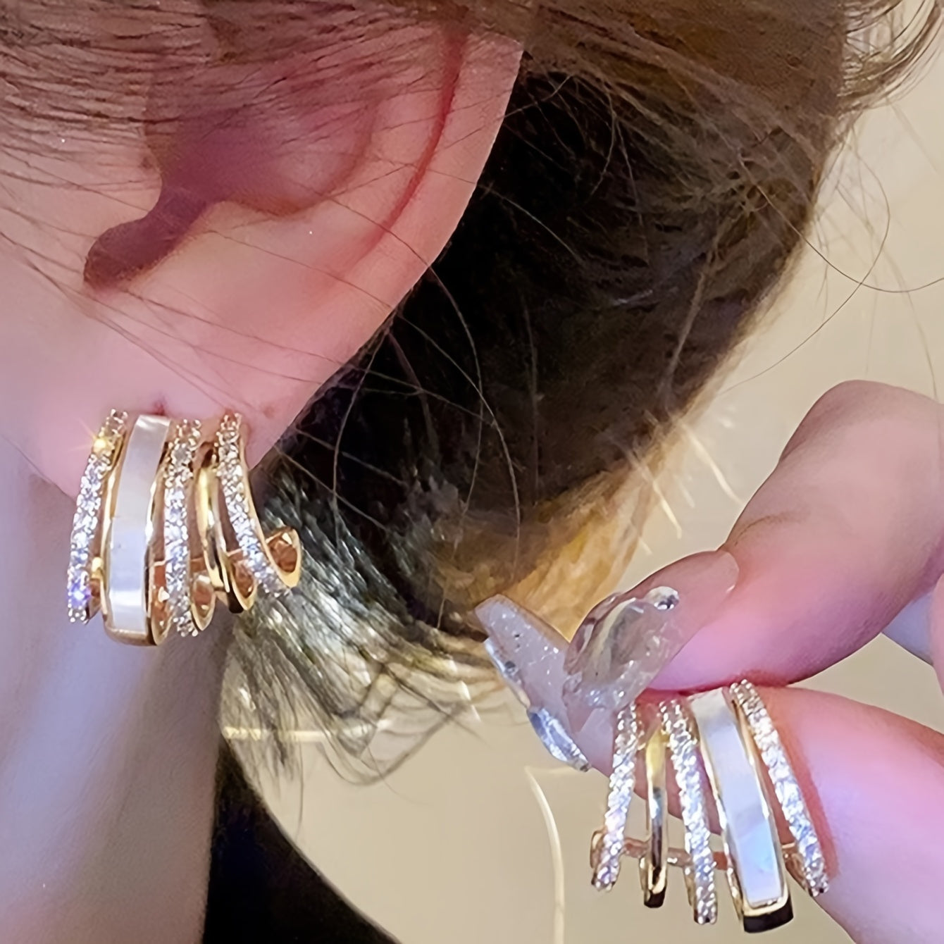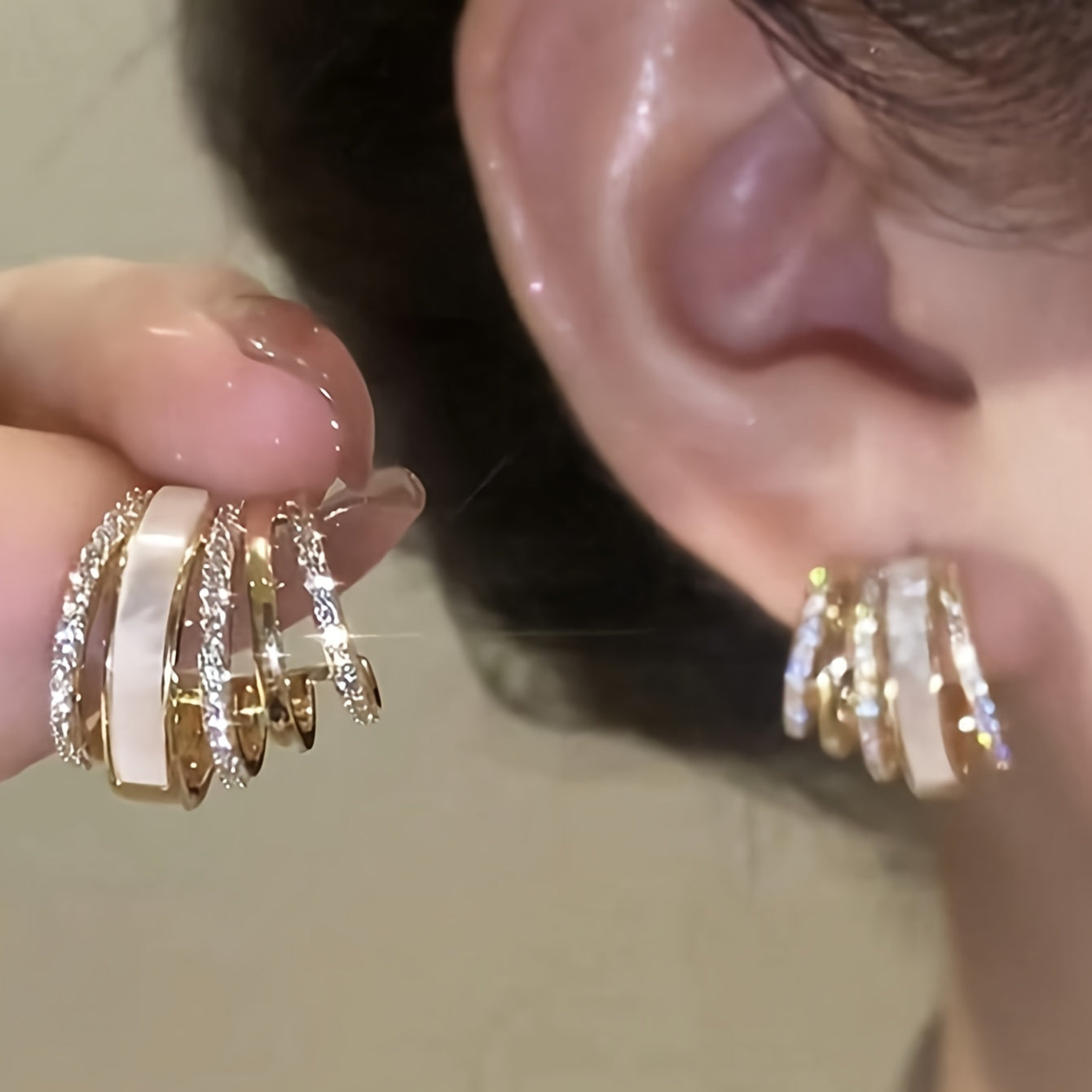 These stylish flash hoop earrings feature rhinestone inlays and a UV plated silver needle, making them perfect for parties and weddings.