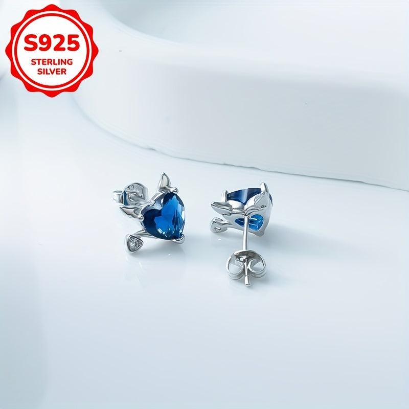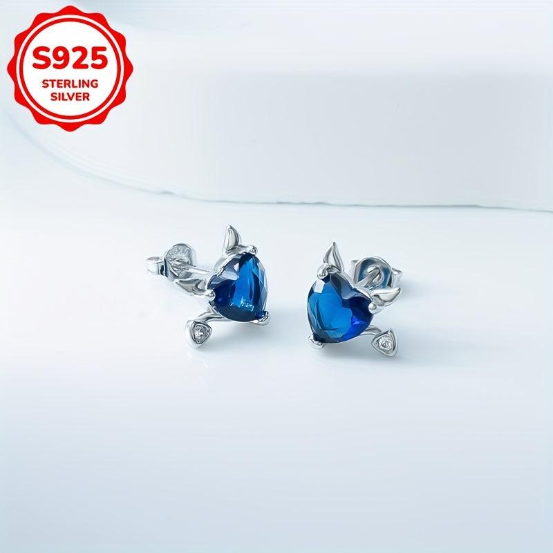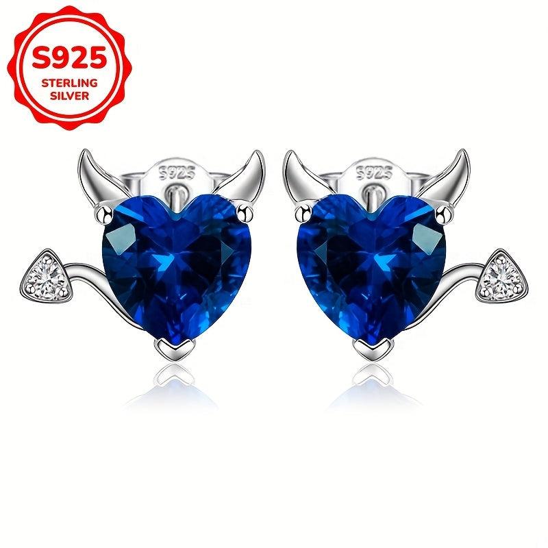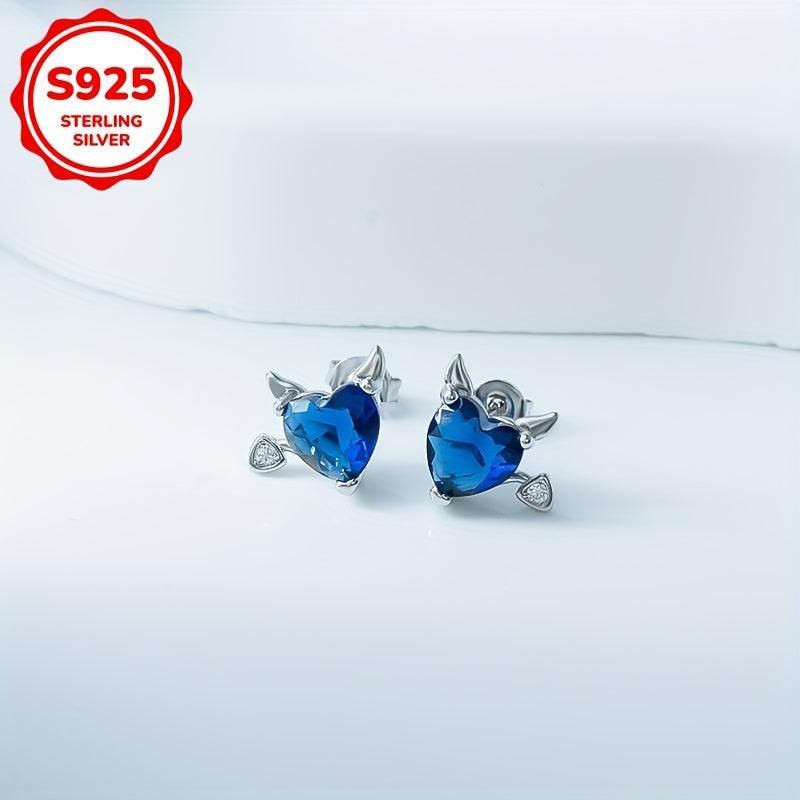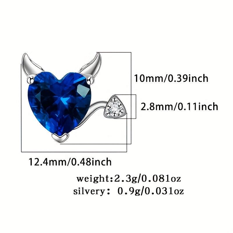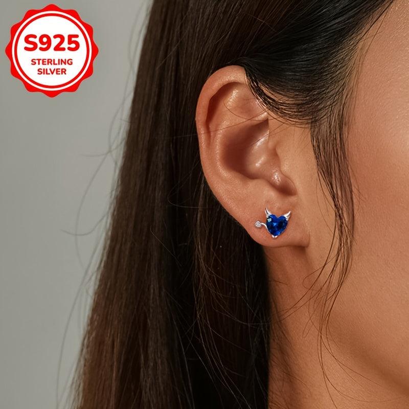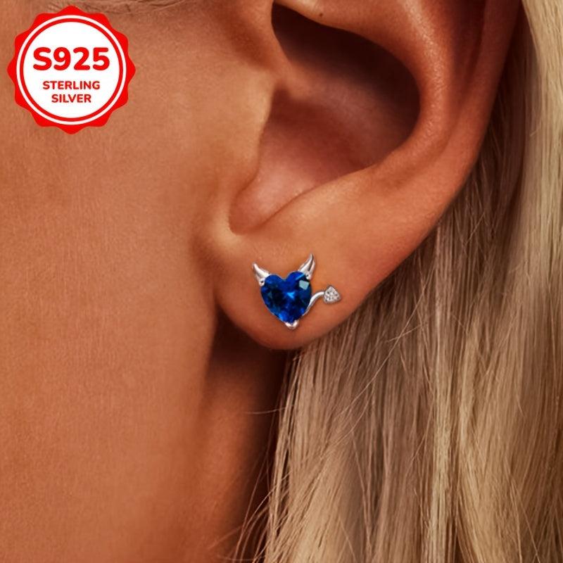 These small heart devil earrings with a small tail design are crafted from S925 silver and synthetic zirconia, making them perfect for both daily wear and holiday occasions.