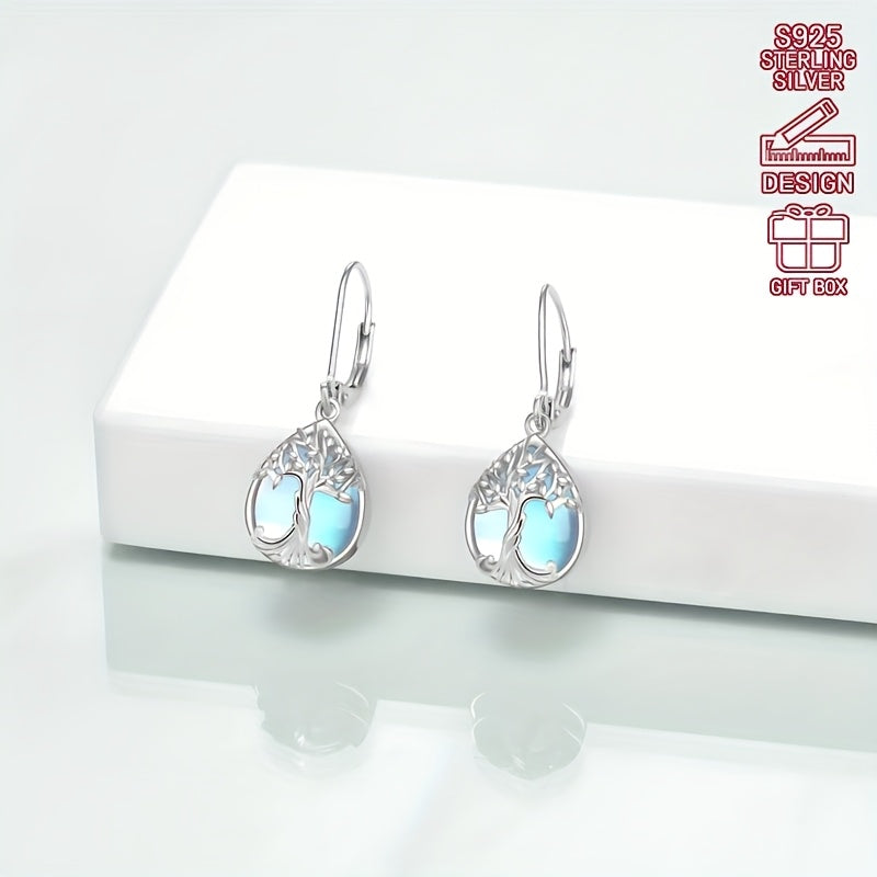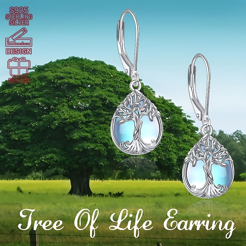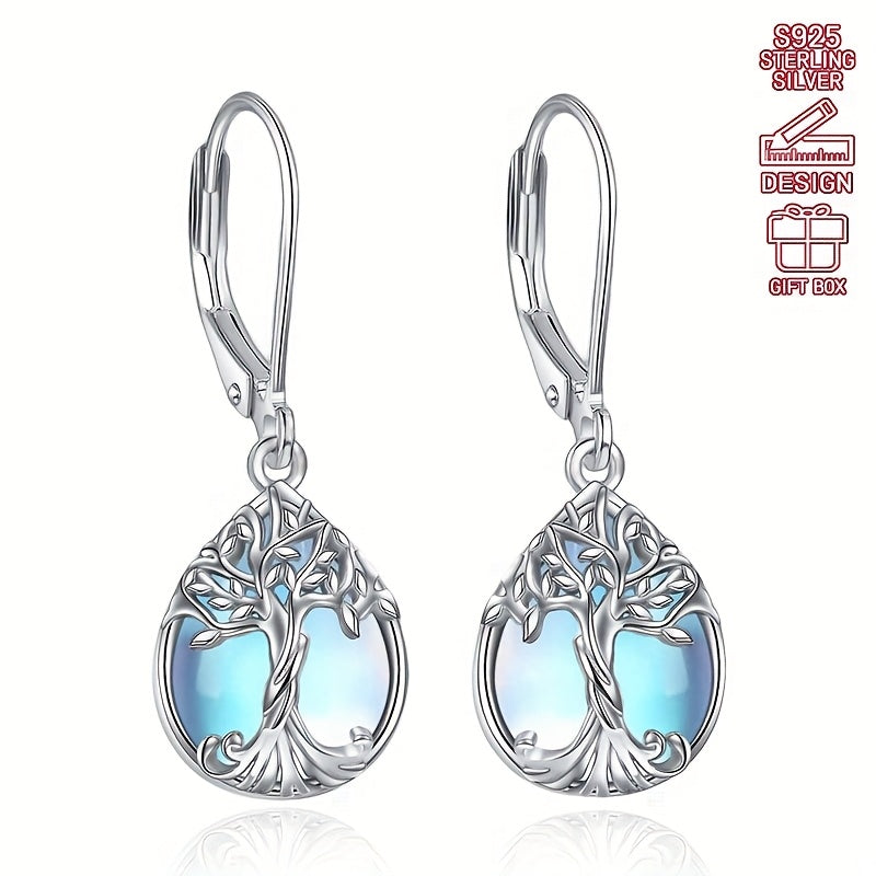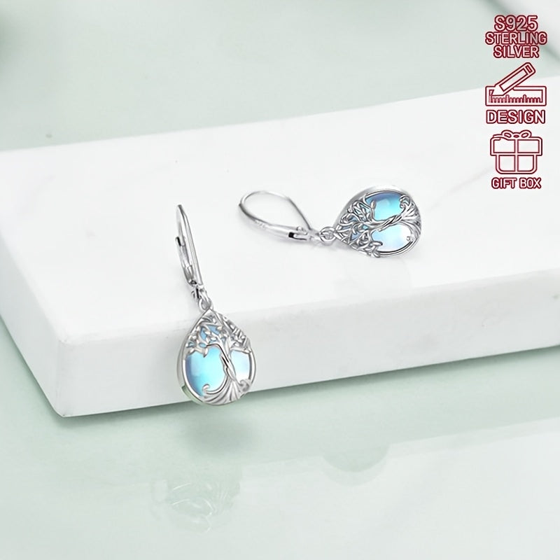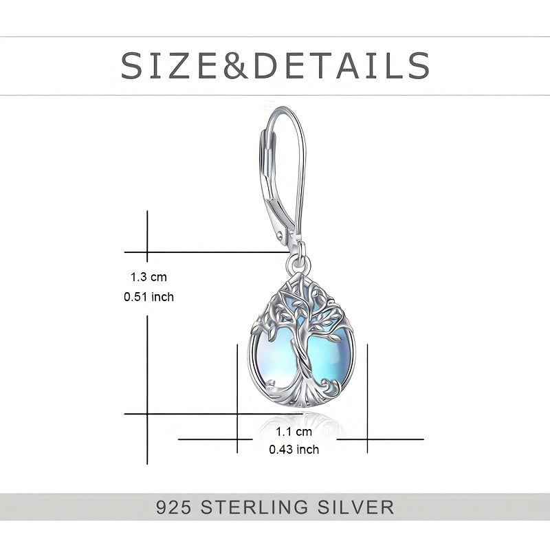These stunning earrings feature moonstone teardrops with a Tree of Life pendant design. Made of S925 sterling silver, they make a perfect jewelry gift for women.