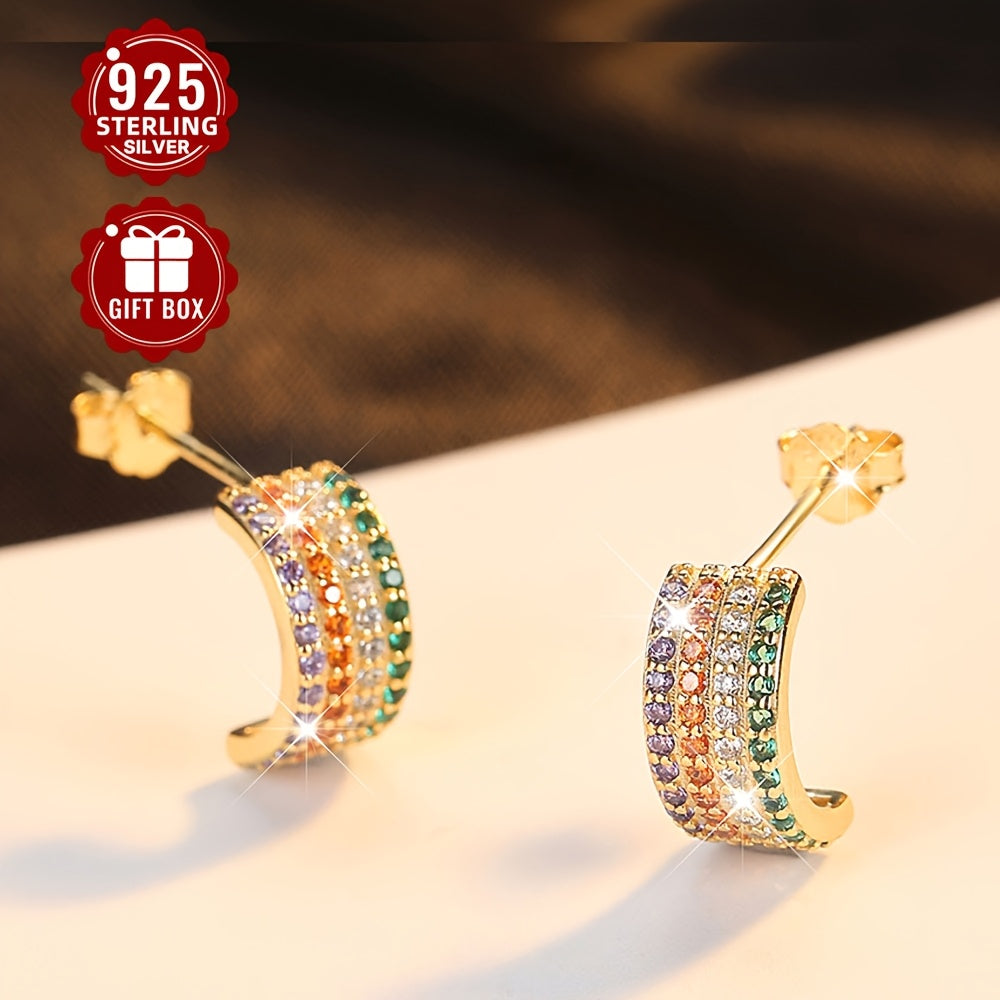 S925 Silver Colorful Zirconia Inlaid Earrings