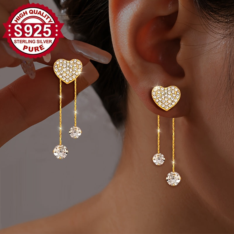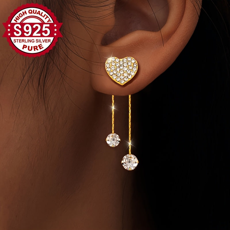 S925 Silver Love Heart Pendant Ear Line Women'S Jewelry Set