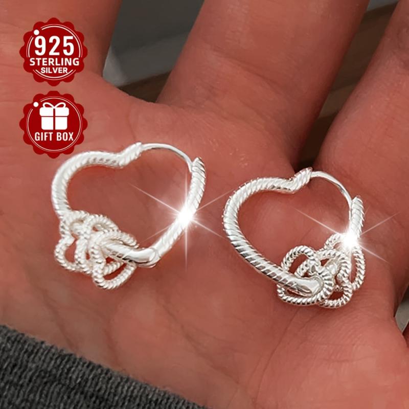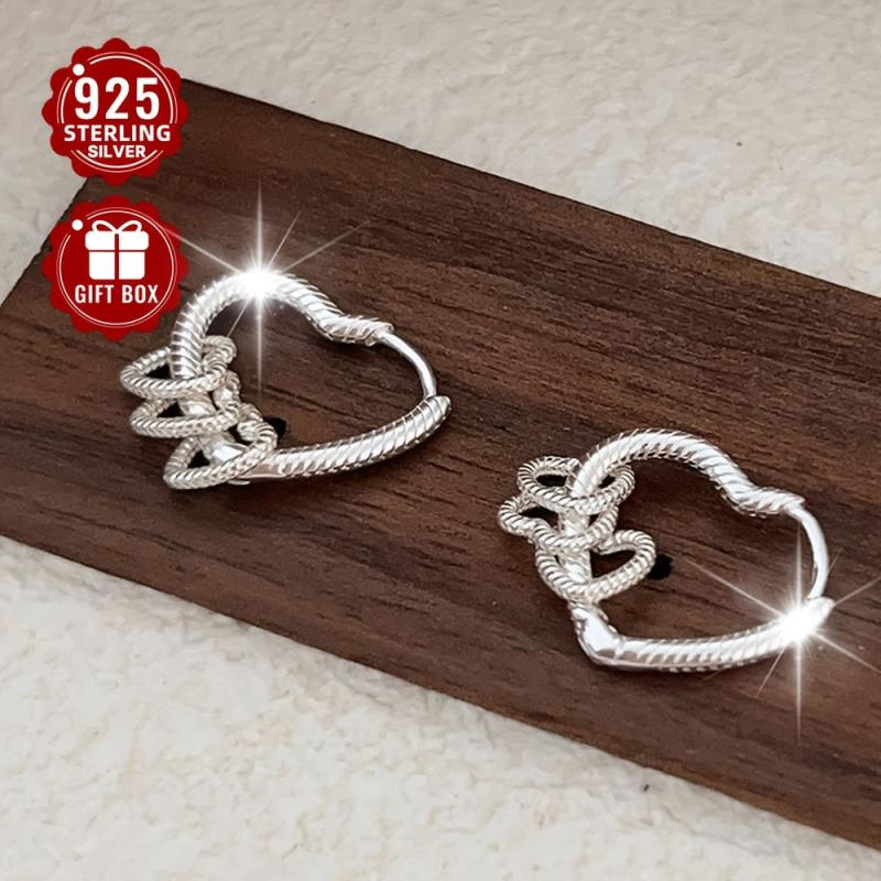 This set includes 2 women's ear studs made of pure S925 silver. Perfect for daily wear, these love earrings are stylish and versatile.