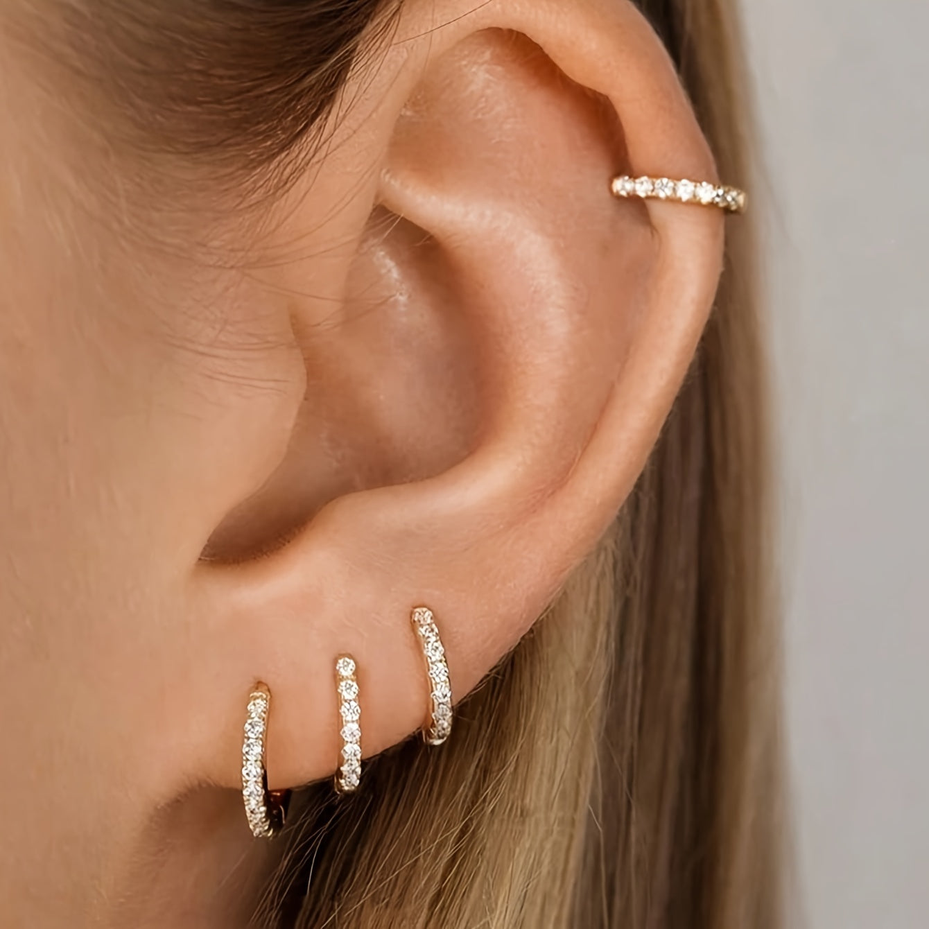 Elevate your ear game with this set of 8 stylish and delicate ear cuffs. Made with copper and zirconia, these cuffs are perfect for holidays, parties, dates, and daily wear.