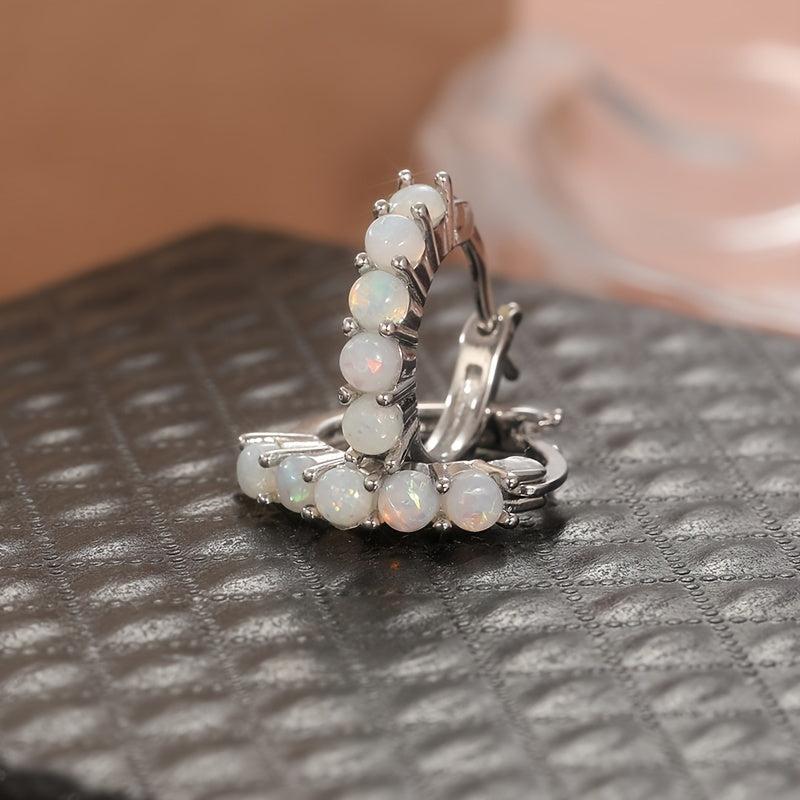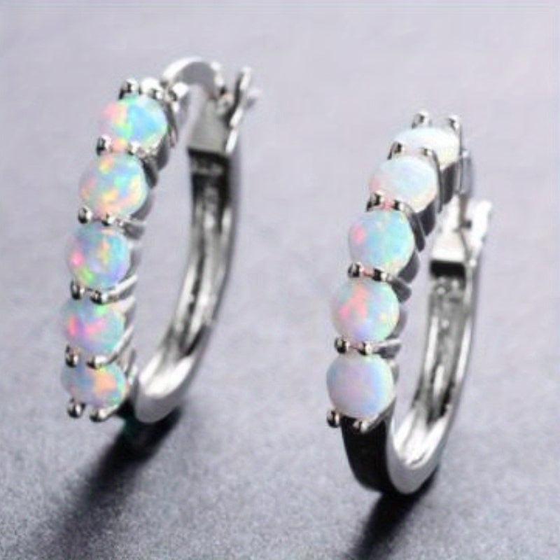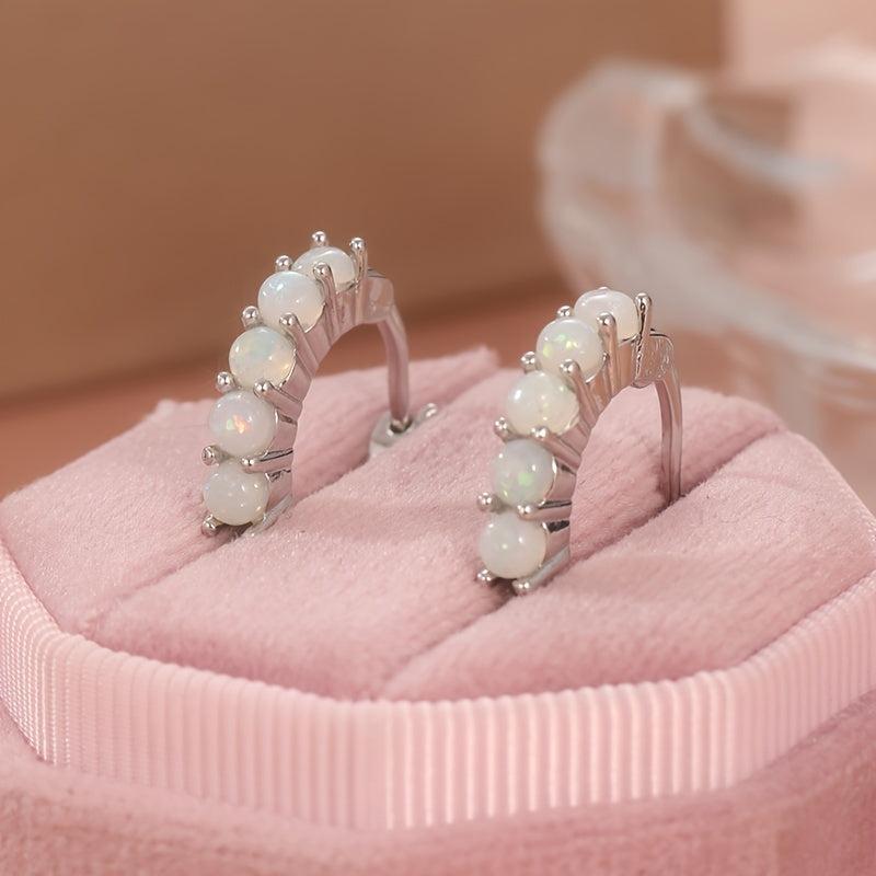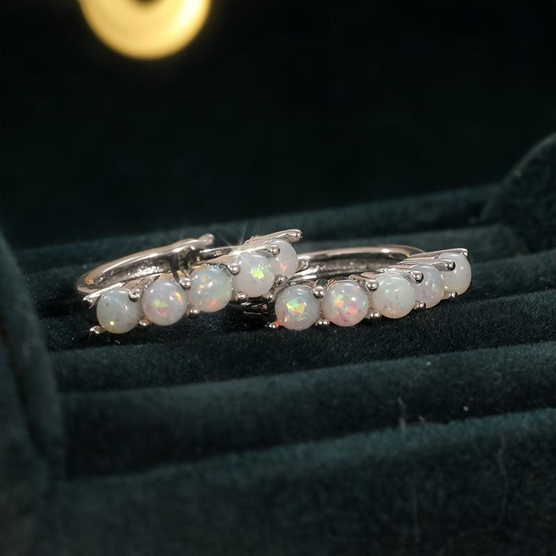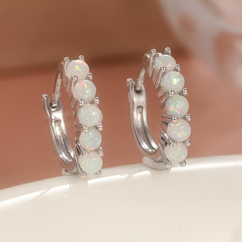 Add a touch of elegance to your look with these stunning hoop earrings featuring shimmering synthetic opal treasures.