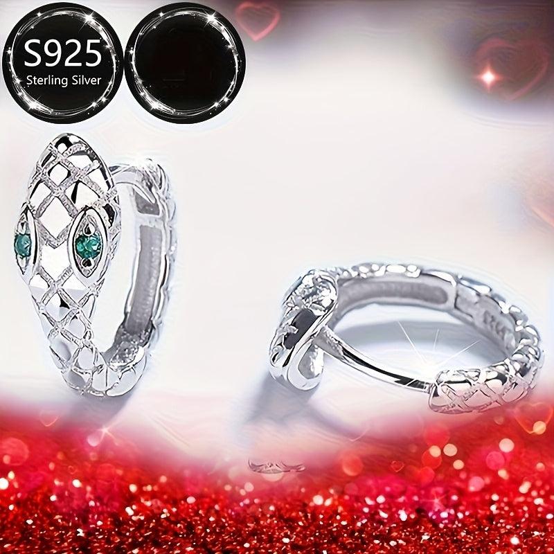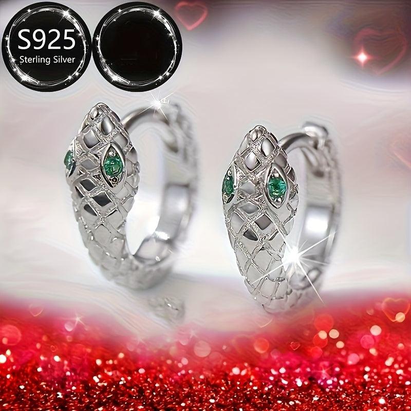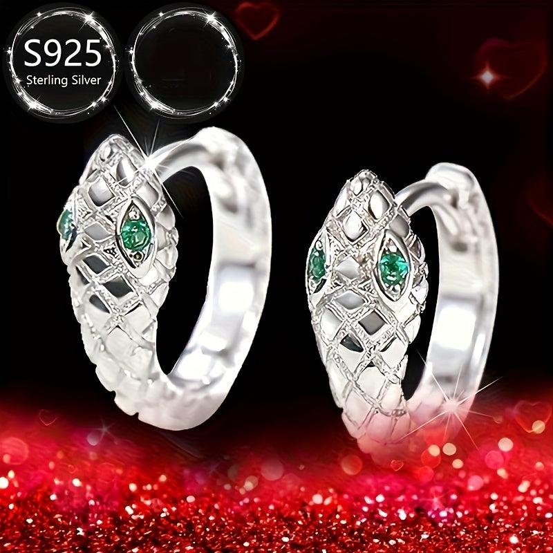 Celebrate the Year of the Snake with these classic stud earrings. Made with 925 silver, they feature a green-eyed snake design. Comes with packaging, perfect as a Mother's Day or Valentine's Day gift.