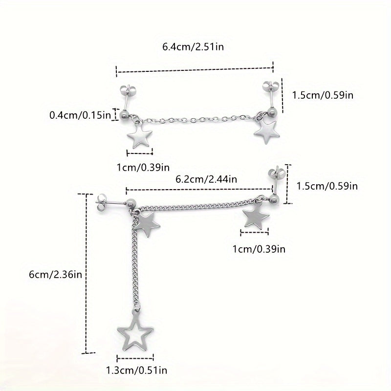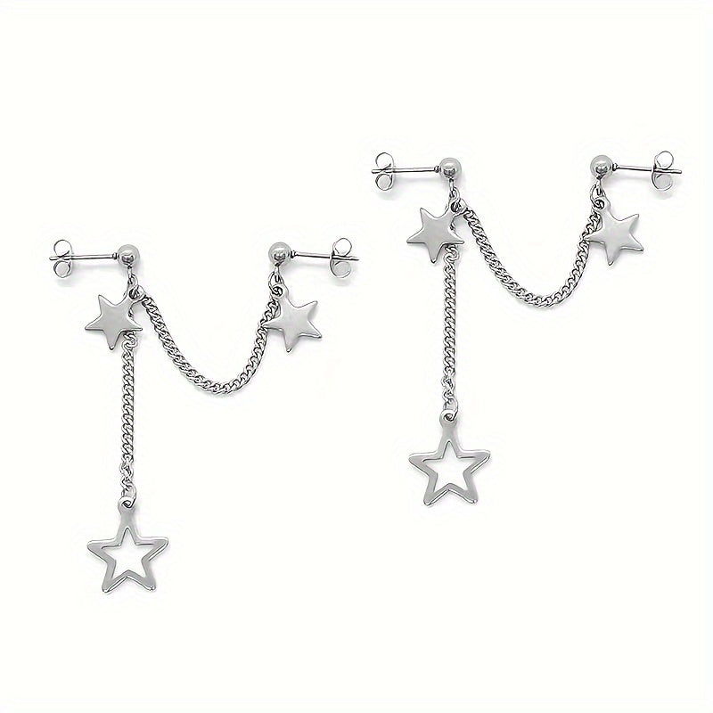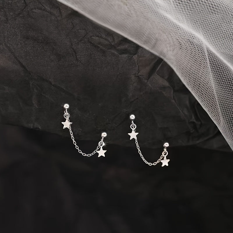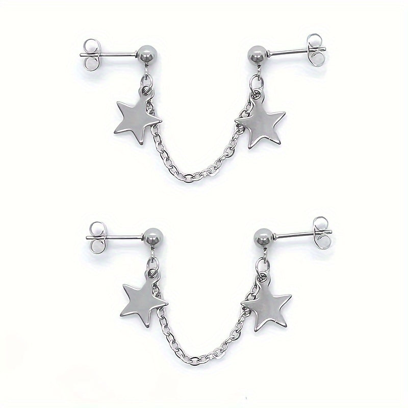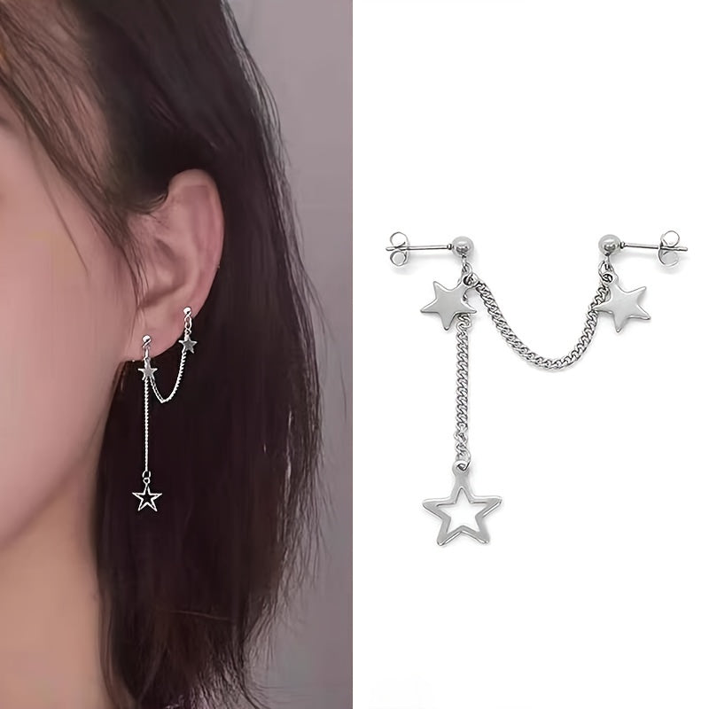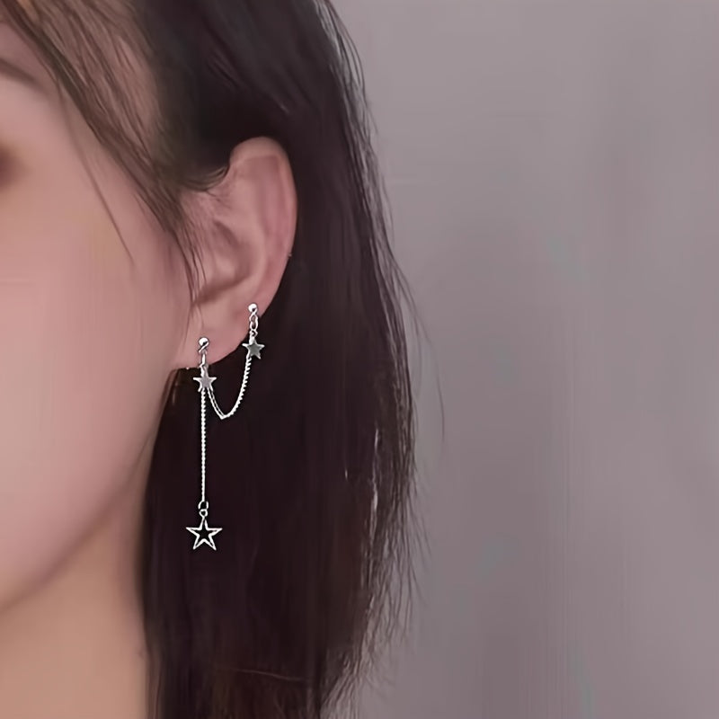 Pair of double pierced earrings designed for women featuring a star earring chain and casual style ear ornaments.