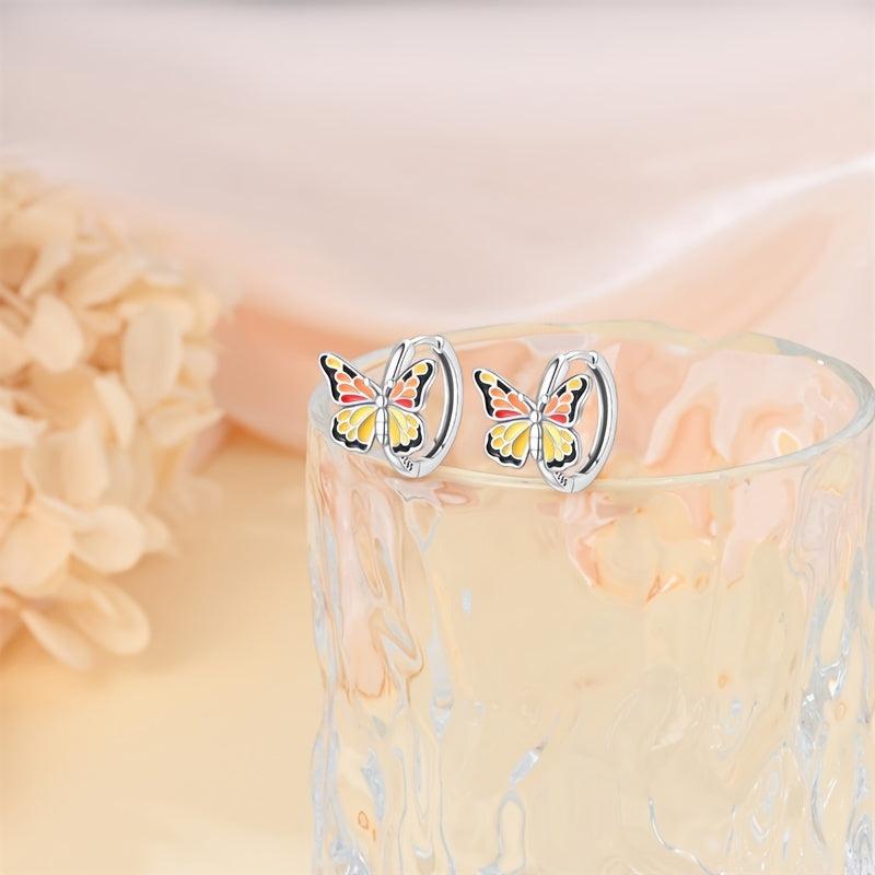 Sterling Silver Butterfly Hoop Earrings with Zirconia for Women