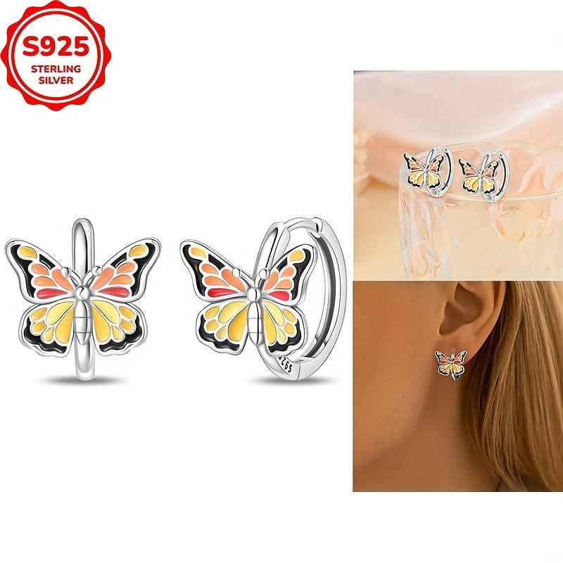 Add a touch of elegance to your look with these butterfly hoop earrings. Made of hypoallergenic 925 sterling silver with synthetic zirconia, perfect for daily wear or special occasions.