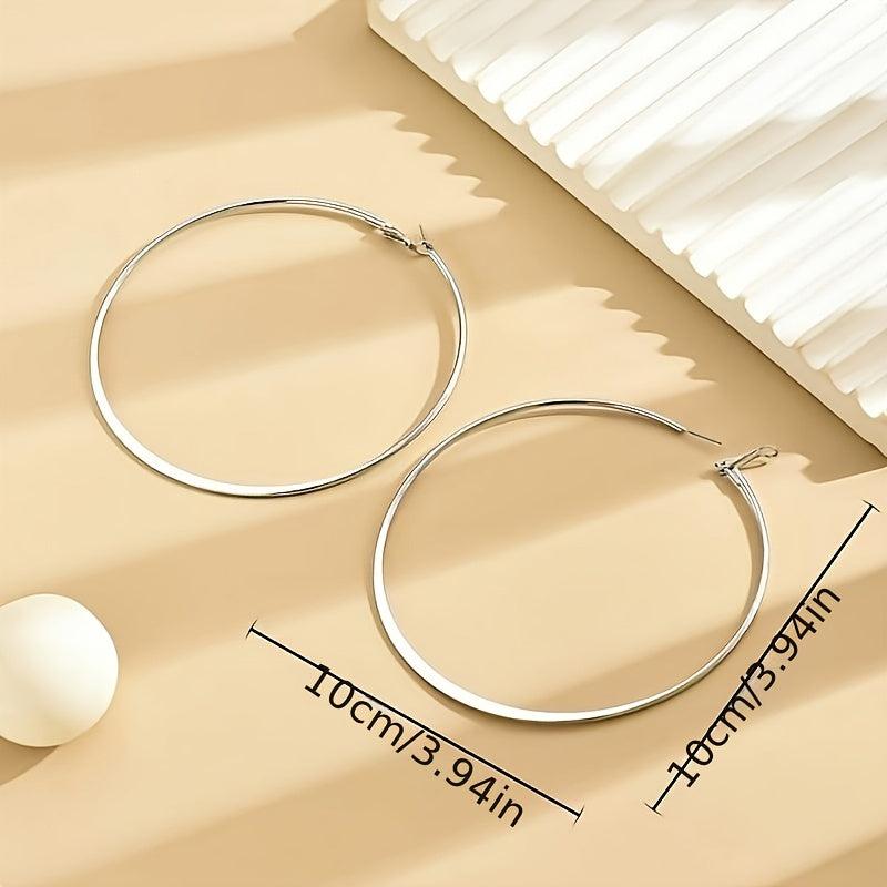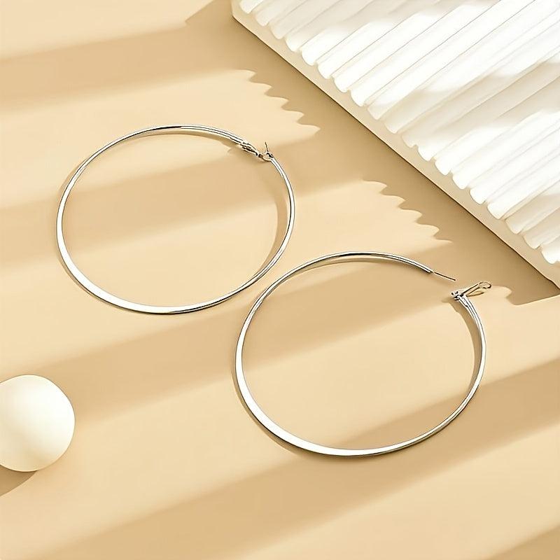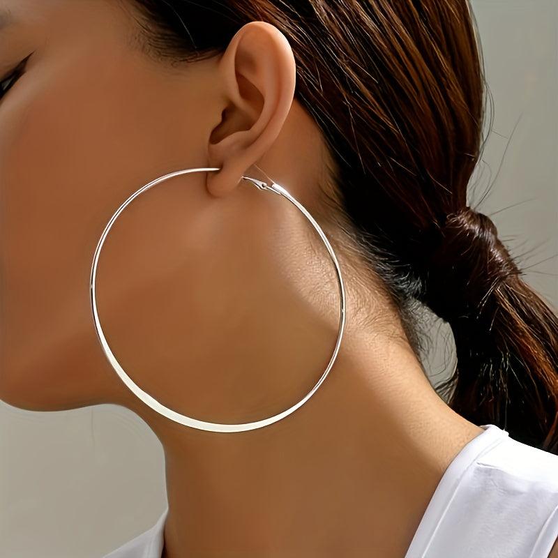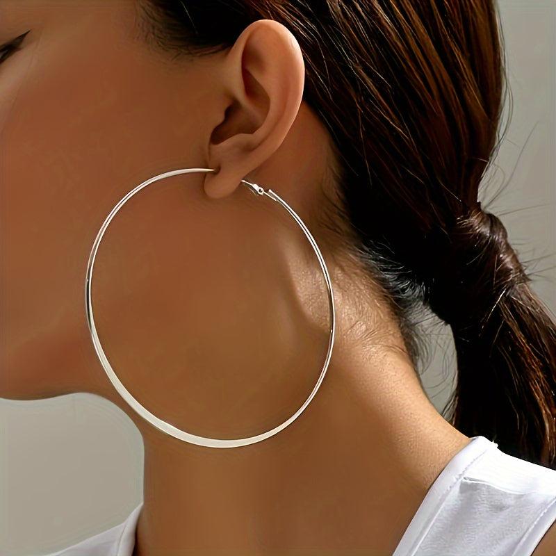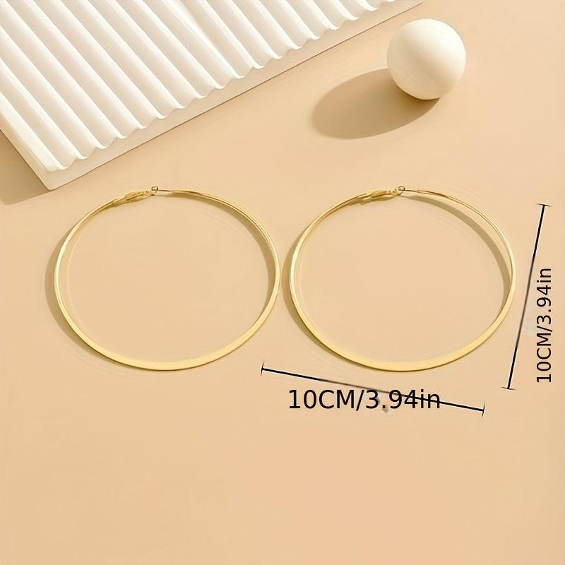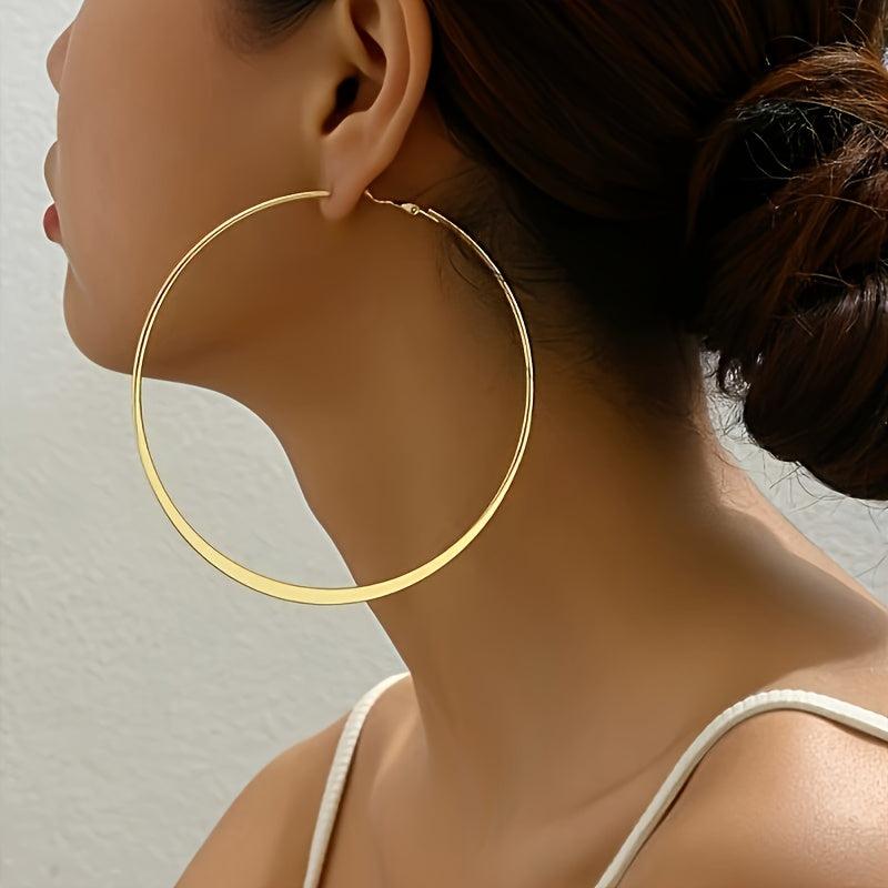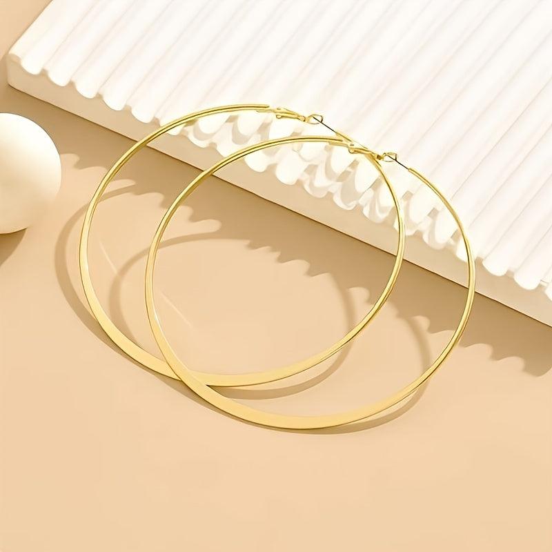 Add a touch of glamour to your look with these large golden hoop earrings. The minimalist design makes them versatile for any outfit.