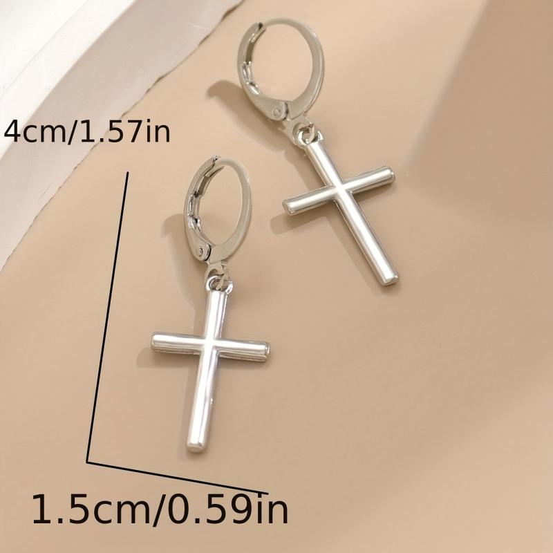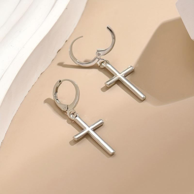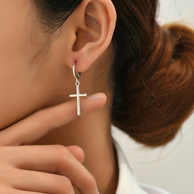 Elevate your style with these chic minimalist retro cross clip-on earrings. The perfect accessory for any outfit.
