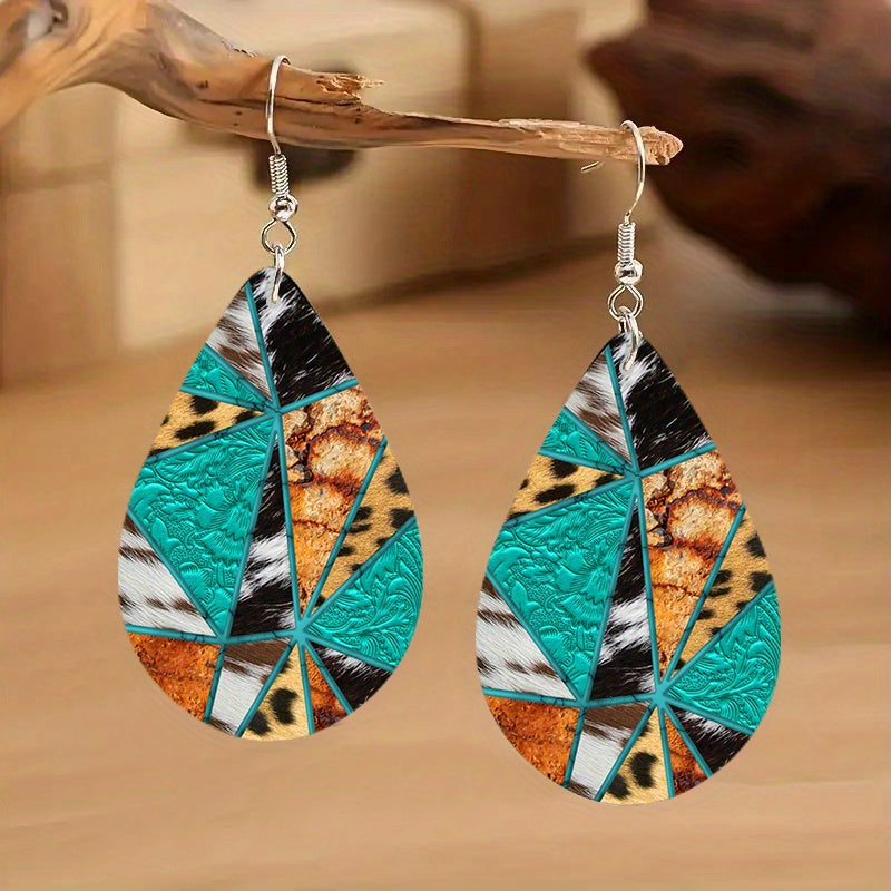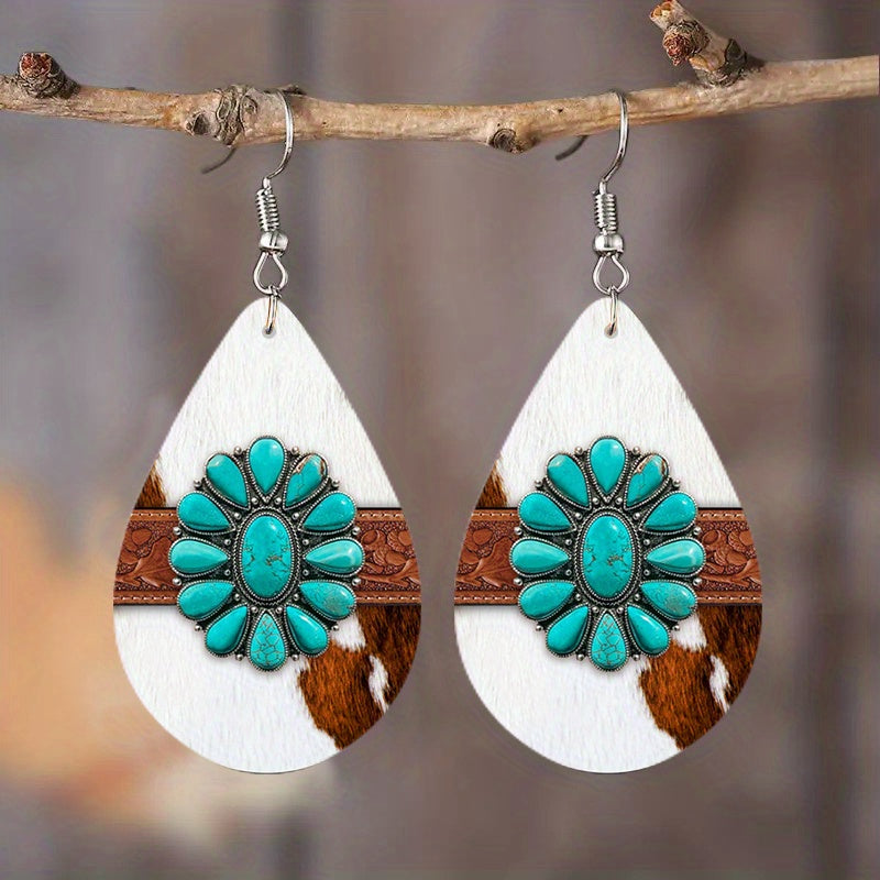 Teardrop and Flower Pattern Dangle Earrings Retro Western Style